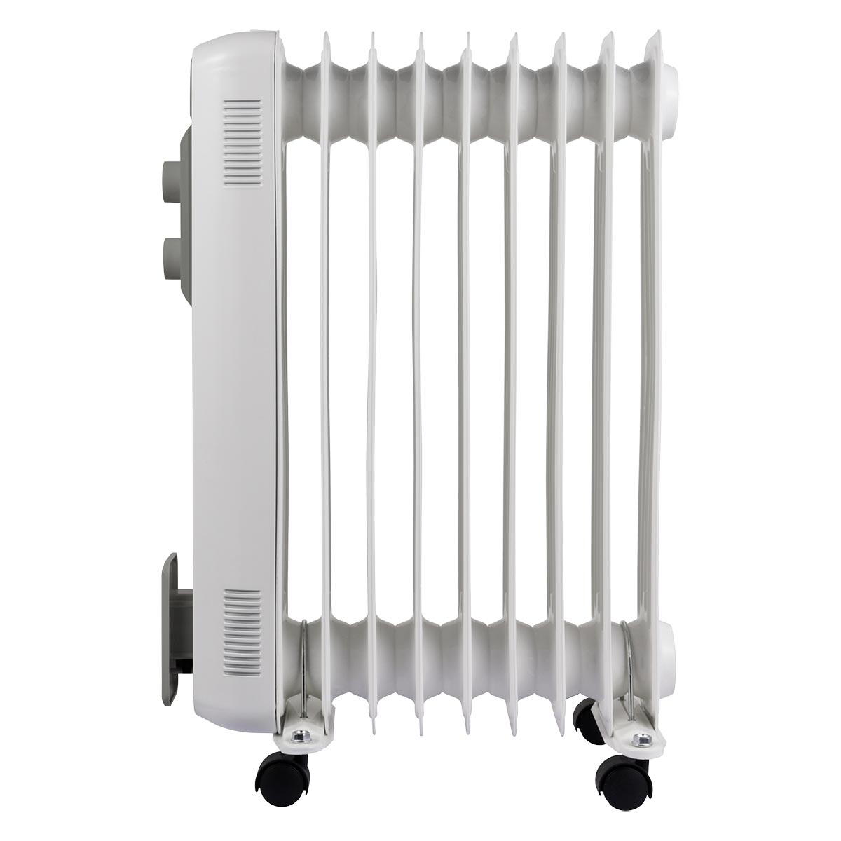Bimar HO429 Ölradiator mit 9 Elementen mit einer Abmessung von 125 x 575 mm und 5 Ölzirkulationskanälen erwärmt Bereiche bis 20 m² durch natürliche Konvektion. Ein energieeffizienter Elektro-Heizkörper mit verstellbarem Raumthermostat und 3 Heizstufen: ECO (800 Watt) / Komfort (1200 Watt) / Rapid (2000 Watt). Die 4 Rollen und der integrierte Griff ermöglichen einen einfachen Transport. Diese IP20-klassifizierte Ölheizung sorgt auch bei Ihnen daheim für eine wohlige Wärme und kann auch in Nassbereichen (Badezimmer) verwendet werden.