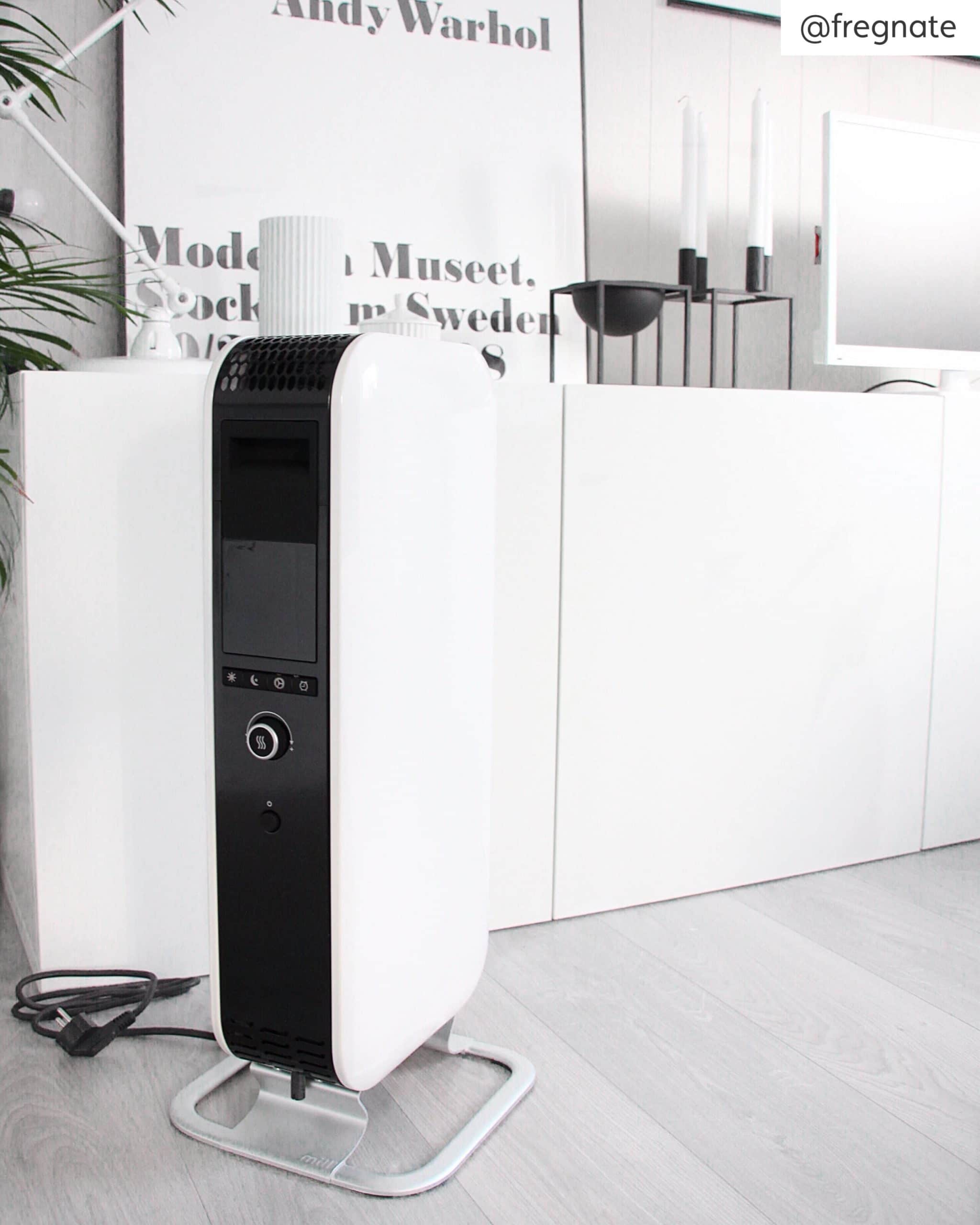Mill AB-H2000DN Ölradiator - innovativer Öl-Heizkörper mit modernster Technologie. Mill AB-H2000DN Ölradiator passt mit seinem eleganten skandinavischen Design bei jedem Interieur. Er sorgt für eine angenehme Wärme, ohne die Luft auszutrocknen - ideal für Personen mit Allergien oder Atemwegserkrankungen. Die Firma Mill mit Sitz im Norden von Europa hat natürlich viel Erfahrung mit langen und kalten Wintern. Kalte Luft wird erwärmt, während diese durch den Heizkörper strömt, die warme Luft nimmt an Volumen zu und steigt nach oben, wodurch wiederum Platz, für die nachströmende kalte Luft geschaffen und der Raum effizient aufgeheizt wird. Der Mill AB-H2000DN gehört zur neuesten Generation ölgefüllter Heizkörper und sorgt mit einer Leistung von max. 2000 Watt für eine wohlige Wärme in Räumen bis 28 m². Das Gerät ist mit einer modernen Tag-/Nachtfunktion ausgestattet, die es Ihnen ermöglicht, die Temperatur zu senken, wenn Sie nicht anwesend sind. Auf diese Weise können Sie sogar bis zu 25 % Ihres Stromverbrauchs einsparen. Der formschöne Mill-Ölradiator ist einfach zu bedienen und mit einem übersichtlichen LED-Display ausgestattet. Zur weiteren Ausstattung des mit ölgefüllten Heizkörpers gehören 3 Leistungsstufen, Überhitzungsschutz, Anti-Kipp-Sicherung und die Mill Heat-Boost Technology. Was unterscheidet Mill Ölradiator von herkömmlichen Öl-Heizkörper? (Mill Heat Boost Technology) Aufgrund des besonderen Designs haben die Mill-Ölradiatoren eine geschlossene Struktur um die mit ölgefüllten Lamellen und hierdurch ergibt sich eine andere Wärmeabgabe. Die Konstruktion des Heizkörpers zwingt die warme Luft durch die warmen Lamellen aufzusteigen und erzielt hiermit eine höhere Geschwindigkeit der erwärmten Luft und eine schneller und effizientere Wärmeverteilung im Raum. Sorgt für eine um 29 % schnellere Erwärmung des Raums im Vergleich zu herkömmlichen Ölradiatoren. Dieser wunderschöne und mobile Design-Radiator ist erhältlich in der Farbe Mill Weiß. Merkmale: Für Räume bis 28 m² Radiator mit bis zu 2000 Watt Leistung 3 Leistungsstufen: 800 – 1200 – 2000 Watt Mill Heat Boost Technology Leiser Betrieb Einfache Bedienung LCD-Anzeige Tag-/Nachtprogramm Energieeffizient Automatische Temperaturkontrolle Elektronisches Thermostat Kippschutzvorrichtung mit automatischer Abschaltung Überhitzungsschutz: automatische Abschaltung bei Überhitzung Aluminiumfüße Erhältlich in der Farbe Mill Weiß