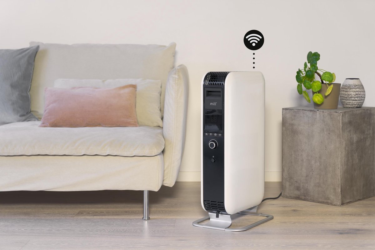 Mill Gentle Air 1500WIFI3 Ölradiator mit integriertem WiFi (WLAN) Mill Gentle Air 1500WIFI3 Ölradiator sorgt mit seiner Leistung von 1500 Watt für eine angenehme Wärme in Räumen bis 22 m². Die Bedienung erfolgt manuell über ein stilvolles Touch-Bedienfeld oder über WiFi (Millheat-App). Der mit Öl gefüllte Heizkörper ist mit einem integrierten WiFi ausgestattet und stellt mittels Bluetooth eine direkte Verbindung zu einem WiFi-Netzwerk her. Wie der Name schon sagt, ist er Mill Gentle Air eine schonende Wärmequelle, die weder Staub verbrennt noch die Raumluft austrocknet. Millheat-App: Hilft Ihnen, Ihre Heizung mit nur einem Knopfdruck auf Ihrer Millheat App zu kontrollieren. Der App kann weltweit verwendet werden und ermöglicht die Regulierung mehrerer Heizungen. Die App ist kostenlos und einfach auf Ihrem Smartphone oder Tablet zu installieren. Nach dem geplanten Update im Herbst 2022 wird das Heizgerät auch kompatibel mit Google Assistant, Alexa und Apple HomeKit sein. Was unterscheidet Mill Ölradiator von herkömmlichen Öl-Heizkörper? (Mill Heat Boost Technology) Das besondere Design der Mill-Ölradiatoren, eine geschlossene Struktur um die mit ölgefüllten Lamellen, ermöglicht eine andere Wärmeabgabe. Die Konstruktion des Heizkörpers zwingt die warme Luft durch die warmen Lamellen aufzusteigen und erzielt hiermit eine höhere Geschwindigkeit der erwärmten Luft und eine schneller und effizientere Wärmeverteilung im Raum. Sorgt für eine um 29 % schnellere Erwärmung des Raums im Vergleich zu herkömmlichen Ölradiatoren. Bluetooth ermöglicht eine automatische Verbindung mit Ihrem WLAN-Netzwerk, unabhängig vom Routertyp OTA (OVER THE AIR): Nützliches Feature - Software-Updates werden automatisch durchgeführt, damit Sie Ihre Heizung immer auf dem neuesten Stand haben. Bedarfsgerechtes Heizen - der Schlüssel zur Energieeinsparung! Das Heizgerät erwärmt den Raum so, dass die gewünschte Temperatur zu einer bestimmten Zeit erreicht wird. Das Heizgerät lernt, wie schnell/langsam die Temperatur im Raum mit der Zeit steigt/senkt. Auf diese Weise weiß es, wann es mit dem Heizen beginnen muss, um die gewünschte Temperatur zu dem von Ihnen in der App festgelegten Zeitpunkt zu erreichen. Open-Window-Funktion: Wird ein Fenster geöffnet (plötzlicher Temperaturabfall) schaltet das Heizgerät sich automatisch aus. Merkmale: Für Räume bis 22 m² Ölradiator mit einer Leistung bis zu 1500 Watt 3 Leistungsstufen: 600 – 900 – 1500 Watt Mill Heat Boost Technology Integriertes WiFi (WLAN) Manuelle Bedienung oder via Millheat-APP Kinderschutz: Tastensperre möglich (via APP oder manuell) Open-Window-Funktion: Gewerbliches Schloss für Vermieter Optional: Verwendung von Mill Sense für eine präzisere Temperaturregelung Leiser und sicherer Betrieb Energieeffizient und intelligent Automatische Temperaturkontrolle Mechanisches Thermostat Kippschutzvorrichtung mit automatischer Abschaltung Überhitzungsschutz: automatische Abschaltung bei Überhitzung Aluminiumfüße Farbe: Mill Weiß Optional: Verwendung von Mill Sense für eine noch präzisere Temperaturregelung