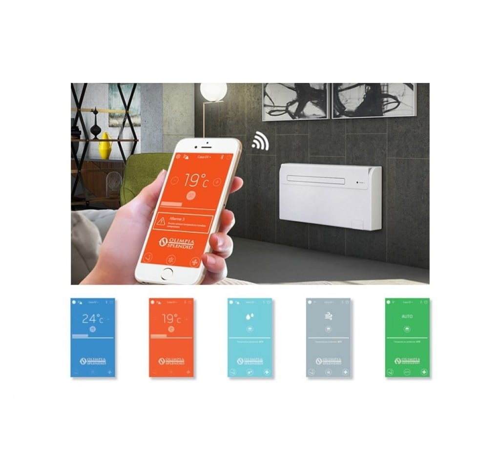 Unico Evo 30HP EVANX Monoblock-Klimaanlage - wählen Sie kompromisslosen Komfort Olimpia Splendid Unico EVO 30 HP EVANX Monoblock-Klimaanlage mit Wärmepumpe zur Selbstmontage und ohne Außeneinheit. Genießen Sie das ganze Jahr über maximalen Komfort! Die Unico-Modelle sind perfekt für Bereiche, in denen die Installation eines herkömmlichen Split-Geräts nicht möglich oder gewünscht ist. Dank der einfachen Montage, seinem kompakten Design (18 cm breit) und dem Verzicht auf ein Außengerät sind sie ideal für Wohnungen, denkmalgeschützte Gebäude, Geschäftsbereiche oder Ferienhäuser. Dieses All-in-One-System mit integrierter Wärmepumpentechnologie (HP) ist eine lohnende Investition. Es überzeugt mit seinem flüsterleisen Betrieb und sorgt dank der Inverter-Technologie für eine Energieeinsparung von bis zu 30 % gegenüber herkömmlichen Klimaanlagen (energieeffizient). Außerdem erkennt dieses Modell niedrige Außentemperaturen und schaltet mithilfe eines modulierenden, elektrischen Widerstands automatisch von Wärmepumpe auf Elektroheizung um. Selbst bei extrem niedrigen Temperaturen liefert der Unico EVO eine konstante Heizleistung. Wie bei den anderen Modellen stehen auch hier vier Betriebsarten (Modi) zur Auswahl: Kühlen, Lüften, Entfeuchten und Heizen. Diese Funktionen können natürlich auch unabhängig voneinander ganzjährig in Räumen bis 30 m² verwendet werden und können am intuitieven Display mit Hintergrundbeleuchtung abgelesen werden. Die Steuerung erfolgt entweder über die Touch-Bedienung direkt am Gerät, die im Lieferumfang enthaltene Fernbedienung, über die OS HOME App (integriertes WiFi) oder dem RS485-Anschluss (Modbus RTU - BMS-kompatibel). Mit der OS HOME App können Sie Ihren UNICO einrichten, programmieren und steuern, wo und wann Sie möchten: Temperatur, Lüftergeschwindigkeit oder Betriebsmodi. Modulierender, elektrischer Widerstand (elektrisches Heizelement): unterhalb einer bestimmten Temperatur (Werkseinstellung 4°C) schaltet das Gerät automatisch von Wärmepumpe auf Elektroheizung um und garantiert eine konstante Heizleistung. Der elektrische Widerstand arbeitet modulierend, die Leistungsabgabe variiert je nach der eingestellten Lüftungsgeschwindigkeit (1,50 kW bei Vmin, 1,75 kW bei Vmed und 2,00 kW bei Vmax). Inverter-Technologie: Energieeinsparung von bis zu 30 % gegenüber herkömmlichen Klimaanlagen SYNC Power System (für akustischen Komfort): besteht aus einem hocheffizienten Twin-Rotationskompressor und einer intelligenten Steuerungstechnologie, die perfekt aufeinander abgestimmt sind. Dadurch bietet dieses Gerät hervorragende Leistungen bei minimalem Geräuschpegel. Im Silent-Modus beträgt der Geräuschpegel maximal 30 dB(A). 4 Modi: Nur Heizen / Nur Kühlen / Nur Ventilator (nur Lüfterbetrieb) / Nur Entfeuchten ECO-Modus: Ermöglicht Energieeinsparung durch automatische Optimierung der Geräteleistung Auto-Modus: ändert Parameter mithilfe der Umgebungstemperatur Nacht-Modus: erhöht die eingestellte Temperatur schrittweise und reduziert die Geräuschemission für mehr Komfort während der Nacht (leiser Betrieb). RS485-Anschluss: für die Steuerung der Klimaanlage mit einem externen BMS in der Sprache Modbus RTU vorgesehen. Bei den Olimpia Splendid Unico ist alles kompakt in einem Gerät integriert, während es bei herkömmlichen Klimageräten auf zwei Einheiten verteilt ist. Die Montage kann jeder Heimwerker problemlos selbst durchführen. Somit haben Sie einen geringen Installationsaufwand und keine störende Außeneinheit an der Fassade. Das Gerät ist ideal für geschützte Bauten, da nur zwei Lüftungsöffnungen (1 Zuluft und 1 Abluft) und ein kleines Loch für den Kondenswasserablauf benötigt werden. Zur weiteren Ausstattung gehört ein Multifiltersystem, bestehend aus elektrostatischem Filter (mit Anti-Staub-Funktion) und Aktivkohlefilter (wirksam gegen Gerüche). Die Filter sollten regelmäßig auf Verschmutzung geprüft und bei Bedarf gereinigt werden. Wärmepumpentechnik (HP): Wärmepumpe Klimaanlage – hiermit können Sie die traditionelle Heizung in den Übergangszeiten ersetzen oder unterstützen. ("COOL ONLY" deaktiviert die Heizfunktion und "WARM ONLY" deaktiviert Kühlfunktion.) Merkmale: Monoblock-Klimaanlage ohne Außengerät zur Selbstmontage 4 Betriebsfunktionen (4-in-1): Heizung, Kühlung, Entfeuchtung und Belüftung Wärmepumpen-Klimaanlage zur Kühlung und Zusatzheizung (HP) Modulierender, elektrischer Widerstand + elektrisches Heizelement: für zusätzliche Unterstützung bei niedrigen Temperaturen (Wärmepumpe + elektrisches Heizelement) Für Bereiche bis 30 m² Einfache Bedienung: Display mit Hintergrundbeleuchtung und Touch-Bedienung direkt am Gerät, Fernbedienung, über die OS HOME App (integriertes WiFi) oder RS485-Anschluss Kühlleistung 3,1 kW (Energieklasse: A) Heizleistung 2,7 kW (Energieklasse: A) SYNC Power System: noch effektiver und leiser mit einem Geräuschpegel: 26 dB(A) - 42 dB(A) Inverter-Technologie: sorgt für eine Energieeinsparung bis zu 30 % Twin-Rotationskompressor Entfeuchtungsleistung: 0,7 Liter/Stunde = 16,8 Liter/Tag. 3 Lüfterstufen + Swingfunktion Luftverdrängung: bis 410 m³/h Großer Luftauslass: regulierbar und für eine gleichmäßige Luftverteilung im Raum Durchmesser der 2 Lüftungslöcher (Ø 162mm/Ø 202 mm.) Bitte beachten Sie: Die serienmäßig mitgelieferten Luftauslässe haben eine Größe von Ø 202 mm Zeitschaltuhr (Timer) Mit Multifiltersystem: elektrostatischem Filter (Anti-Staub) & Aktivkohlefilter Kältemittel R32 Wandbefestigung Kein auffälliges Klimagerät an der Außenwand - nur zwei Lüftungslöcher und ein kleines Loch für den Kondenswasserablauf!