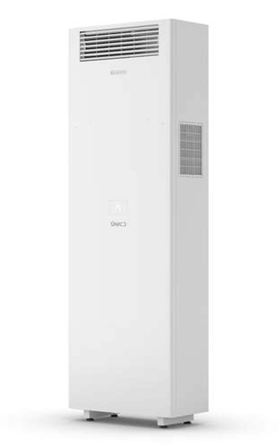 Olimpia Splendid Unico Vertical 35 HP EVAN Monoblock-Klimagerät - Vertikales Design für mehr Komfort Olimpia Splendid Unico Vertical 35 HP EVAN ist eine Klimaanlage mit Wärmepumpe zur Selbstmontage, die ohne Außeneinheit betrieben wird. Diese Monoblock-Klimaanlage eignet sich durch ihr vertikales Design für Bereiche in denen eine herkömmliche Split-Klimagerät nicht geeignet wäre. Seine besondere Bauweise ermöglicht die Installation in kleinen Bereichen, beispielsweise in Ecken oder zwischen Fenstern. Eine lohnende Investition, die ganzjährig in Räumen bis 40 m² verwendet werden kann, nicht nur zum Kühlen, sondern auch als Zusatzheizung. Es überzeugt mit seinem flüsterleisen Betrieb und sorgt dank der Inverter-Technologie für eine Energieeinsparung von bis zu 30 % gegenüber herkömmlichen Klimaanlagen (energieeffizient). Bei dieser Technologie passt sich der Kompressor immer an die aktuelle Situation (Drehgeschwindigkeit des Kompressors variiert) an und sorgt für ein effizientes und besseres Kühlen/Heizen. Die innovative PRO Power-Technologie (Super-Kühlleistung) ermöglicht es dem Monoblock-Klimagerät von Olimpia Splendid, eine Kühlleistung von bis zu 3,5 kW zu erreichen. Wie bei den anderen Modellen stehen auch hier vier Betriebsarten (Modi) zur Auswahl: Kühlen, Lüften, Entfeuchten und Heizen. Diese Funktionen können natürlich auch unabhängig voneinander ganzjährig in Räumen bis 30 m² verwendet werden und können am intuitieven Display mit Hintergrundbeleuchtung abgelesen werden. Die Steuerung erfolgt entweder über die Touch-Bedienung direkt am Gerät, die im Lieferumfang enthaltene Fernbedienung, über die OS HOME App (integriertes WiFi) oder dem RS485-Anschluss (Modbus RTU - BMS-kompatibel). Mit der OS HOME App können Sie Ihren UNICO einrichten, programmieren und steuern, wo und wann Sie möchten: Temperatur, Lüftergeschwindigkeit oder Betriebsmodi. Bei den Olimpia Splendid Unico ist alles kompakt in einem Gerät integriert, während es bei herkömmlichen Klimageräten auf zwei Einheiten verteilt ist. Die Montage kann jeder Heimwerker problemlos selbst durchführen. Somit haben Sie einen geringen Installationsaufwand und keine störende Außeneinheit an der Fassade. Das Gerät ist ideal für geschützte Bauten, da nur zwei Lüftungsöffnungen (1 Zuluft und 1 Abluft) und ein kleines Loch für den Kondenswasserablauf benötigt werden. Optional kann ein Wärmerückgewinnungsmodul (HRV) integriert werden, wofür zwei zusätzliche Öffnungen mit 10 cm benötigt werden. Auch eine Integration in ein Gebäudemanagment (GLT) ist, dank der RS485-Anschluss (Modbus RTU) möglich. Zur weiteren Ausstattung gehört ein Multifiltersystem, bestehend aus elektrostatischem Filter (mit Anti-Staub-Funktion) und Aktivkohlefilter (wirksam gegen Gerüche). Die Filter sollten regelmäßig auf Verschmutzung geprüft und bei Bedarf gereinigt werden. Wärmepumpentechnik (HP): Wärmepumpe Klimaanlage – hiermit können Sie die traditionelle Heizung in den Übergangszeiten ersetzen oder unterstützen. ("COOL ONLY" deaktiviert die Heizfunktion und "WARM ONLY" deaktiviert Kühlfunktion.) Merkmale: Monoblock-Klimaanlage ohne Außengerät zur Selbstmontage 4 Betriebsfunktionen (4-in-1): Heizung, Kühlung, Entfeuchtung und Belüftung Wärmepumpen-Klimaanlage zur Kühlung und Zusatzheizung Vertikale Bauweise passt in jede Ecke Mit PRO-Power Technologie Inverter-Technologie Einstellbarer Lüfter: 3 Stufen Räume bis 40 m² Kühlleistung 3,5 kW (Energieklasse: A) Heizleistung 2,4 kW (Energieklasse: A) Leise und leistungsstark: 36 - 44 dB(A) Zeitschaltuhr (Timer): 24 Stunden Entfeuchtungsleistung: 26,4 Liter/Tag (bei 30 °C - 90 % R.V.) Luftstrom: regulierbar und sorgt für gleichmäßige Luftverteilung im Raum Bodenmodell - freistehend oder integrierte Nutzung Durchmesser der 2 Lüftungslöcher (Ø 202 mm.) Bitte beachten Sie: Die serienmäßig mitgelieferten Luftauslässe haben eine Größe von Ø 202 mm. Übersichtliche Fernbedienung und Touch-Display (bei freistehender Nutzung) Mit Multifiltersystem: elektrostatischem Filter (Anti-Staub) & Aktivkohlefilter Umweltfreundliches Kältemittel R32 (GWP675) Mit WLAN und Smart Control: Mit der OS HOME App können Sie Ihren UNICO einrichten, programmieren und steuern, wo und wann Sie möchten. RS485-Anschluss: für die Steuerung der Klimaanlage mit einem externen BMS in der Sprache Modbus RTU vorgesehen. Kein auffälliges Klimagerät an der Außenwand - nur zwei Lüftungslöcher und ein kleines Loch für den Kondenswasserablauf!