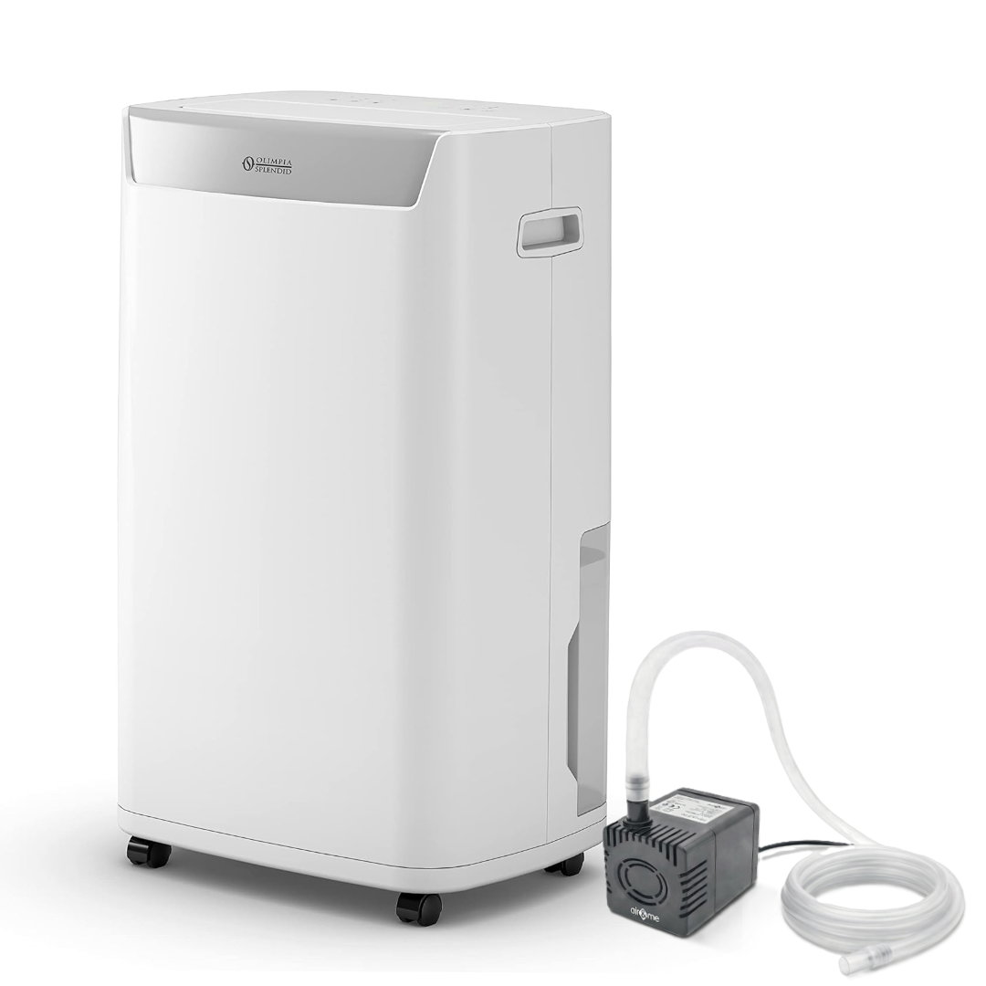 DREIFACHE FILTRATION Saubere Luft dank Staub- und Pollenfilter, Aktivkohlefilter zur Beseitigung unangenehmer Gerüche sowie einem HEPA-Filter mit hoher Effizienz bei Mikro-Partikeln. INTEGRIERTES WIFI Durch das Herunterladen der Olimpia Splendid App kann der Luftentfeuchter bequem per Smartphone oder Tablet gesteuert werden, auch von unterwegs. OPTIONAL MIT KONDENSATPUMPE Optional ist der Olimpia Splendid S1 20P mit einer Kondensatpumpe erhältlich. Diese sorgt dafür, dass das Kondenswasser automatisch zu einem Abfluss, z. B. einem Waschbecken, geleitet wird. So kann das Gerät kontinuierlich betrieben werden, ohne den Tank manuell entleeren zu müssen. Dank der integrierten Pumpe kann das Wasser auch aus tiefer gelegenen Räumen, wie einem Keller, nach oben abgeführt werden. Die maximale Förderhöhe beträgt 3 Meter. Funktionen Entfeuchtungsleistung bis zu 20 Liter pro Tag Geeignet für Räume bis zu 80 m² Wassertankkapazität: 5 Liter Niedriger Geräuschpegel von 38 dB(A) Motorisierte Luftausblaslamelle Anzeige von Raumtemperatur und Luftfeuchtigkeit 1-24 Stunden Timer Halbtransparenter, abnehmbarer Wassertank mit Griff Drei Lüfterstufen: niedrig / mittel / hoch Wäschetrocknungsfunktion Automatische Abtaufunktion Kindersicherung Rollen für einfachen Transport Volltankanzeige Ergonomische Griffe