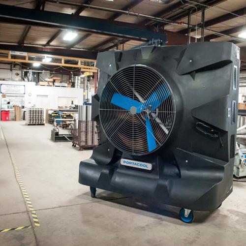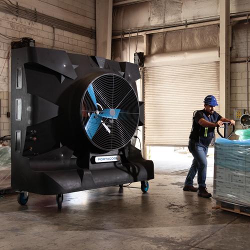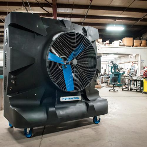 Der Portacool Hurricane™ 370 ist ein adiabatischer Luftkühler für große Räume (bis 580 m²). Energieeffiziente und mobile Kühlung mit diesem leistungsstarken Verdunstungskühler. Keine Festinstallation, keine Luftschläuche, direkte Kühlung nach Befüllung mit Wasser. Portacool Hurricane™ 370 ist ein mobiler Luftkühler für den Einsatz in Unternehmen, Lagerhallen, Sportanlagen und Außenbereichen. Portacool Luftkühler sind extrem energieeffizient! Ein adiabatischer Luftkühler kühlt die Umgebungsluft mit Wasser. Der Hurricane™ 360 ist mit einem Wassertank von 284 Litern ausgestattet und schaltet sich automatisch ab, wenn der Tank fast leer ist. KUUL-Effekt: 46 AirSain - offizieller Vertriebspartner von PORTACOOL
