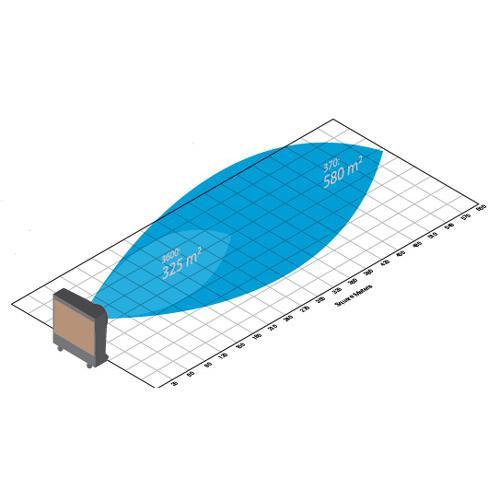 Portacool Hurricane™ 370 ist ein echtes Kühlwunder! Dieser adiabatische Luftkühler kombiniert hohe Geschwindigkeit mit modernster (patentierter) Kühltechnologie. Der Energieverbrauch ist niedrig und als Kältemittel wird ausschließlich Wasser verwendet. Ein adiabatischer Kühler kühlt die Umgebungsluft mit Wasser (Verdunstungskühler) und ist darum sehr umweltfreundlich. Der Portacool Hurricane™ 370 tragbare Verdunstungskühler ist konzipiert für den Einsatz in großen Räumen (bis 580 m²) und kann sofort nach Befüllung des Wassertankes (284 Litern) verwendet werden. Dieser Portacool Verdunstungskühler wurde für den Einsatz in extremen Umgebungsbedinungen entwickelt und sein Gehäuse ist äußerst robust, mit stabilen Rollen und erfordert wenig Wartung. Zur weiteren Ausstattung gehören eine digitale Steuerkonsole, eine Wasserstandsanzeige, Trockenlaufschutz und eine regulierbare Lüftergeschwindigkeit. Selbstverständlich verfügt der Adiabatic Hurricane™ 370 über sechs Portacool Cat5 Air Boosters™, die einen zusätzlichen Luftstrom für maximalen Kühlkomfort liefern. Weiters ist jeder BIO-Cooler van Portacool mit der patentierten KUUL™ Komfort-Verdunstungsmatte ausgestattet. Der KUUL-Effekt (= Volume + Speed + Efficiency) gibt an, wieviel Komfort der jeweilige Portacool-Aircooler bietet. Anwendungsbereiche: Industrie, gewerblichen, aber auch privaten Räumlichkeiten: Garagen, Lagerhallen, Werkstätten, Sportanlagen und sogar Außenbereiche. Merkmale: Für Räume bis 580 m² Mobiler Verdunstungskühler mit 4 versperrbaren Rädern Automatische Pumpenabaschaltung Patentierte Cat5 Air Boosters™ Filter: Patentiert/KUUL™ Verdunstungsmatte Wassertank 284 Liter Niedrige Kosten Kältemittel: Wasser Keine Installationskosten - sofort einsetzbar Einfach zu bedienen und nahezu wartungsfrei KUUL Effect: 46 PORTACOOL, WENN ES UM IHREN KOMFORT GEHT. AirSain - offizieller Vertriebspartner von PORTACOOL