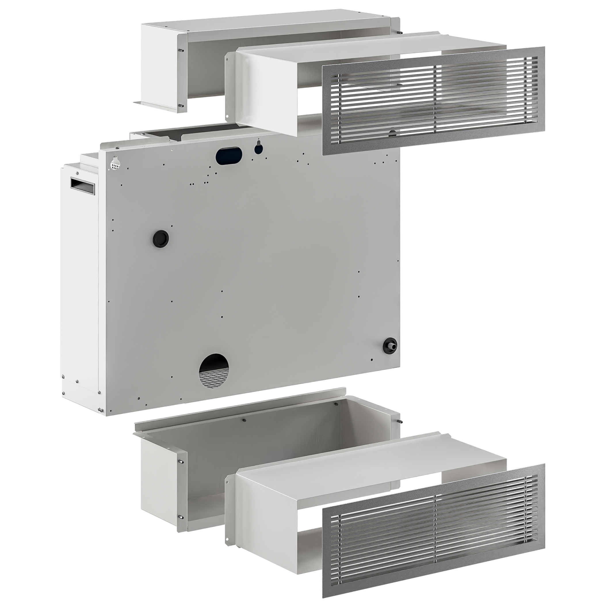 Klimaluft 090 DCS, mit elegantem Design und einfacher Bedienung. Der Wandentfeuchter verfügt über eine Entfeuchtungskapazität von bis zu 89 Litern pro Tag. Die DCS-Ausführung wird außerhalb des Raumes installiert, mit Luftzu- und -abfuhr durch die Wand (Plenum, Wall & Grill). Der Luftentfeuchter eignet sich für die Klimaregulierung in einem Hallenbad, Museum, Archiv, einer Bibliothek, Kirche, einem Keller, Lager, Industriegebäude sowie in allgemeinen Räumen, in denen eine zu hohe Luftfeuchtigkeit Schäden verursachen kann. Die „Hot Gas“-Option ermöglicht die Luftentfeuchtung bereits ab einer Raumtemperatur von 5 °C. Ein Entfeuchter mit Heißgasmodul ist ideal zum Trocknen von nicht klimatisierten Lagerräumen, unbeheizten Räumen und kalten Bereichen. Diese Option ist erforderlich, wenn Sie bereits ab einer Raumtemperatur von 5 °C entfeuchten möchten.