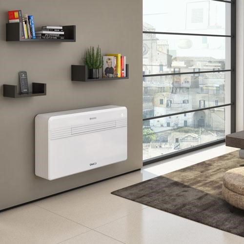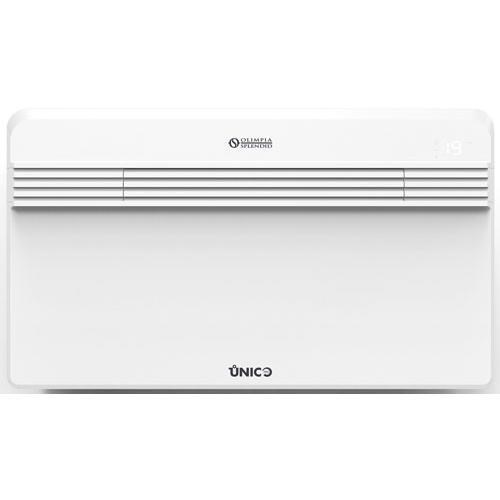 Olimpia Splendid UNICO PRO Inverter 14 HP - ein leistungsstarkes Design-Klimagerät ohne Außeneinheit zum Kühlen und Heizen Olimpia Splendid UNICO PRO Inverter 14 HP ist eine Klimaanlage mit Wärmepumpe und ohne auffällige Außeneinheit. Dieses Monoblock-Klimagerät eignet sich hervorragend für denkmalgeschützte Häuser, Wohnungen, Büros und überzeugt durch ihr zeitloses Design, den geringen Geräuschpegel und die technischen Raffinessen. Weiters verfügt die Olimpia Splendid UNICO PRO Inverter 14 HP über 4 Betriebsarten (Modi): Kühlen, Lüften, Entfeuchten und Heizen, die natürlich auch unabhängig voneinander ganzjährig in Räumen bis 38 m² verwendet werden können. Silent Mode, Touch-Display und Fernsteuerung per Fernbedienung oder Smartphone (WiFi ist optional) sorgen für ein ideales Komforterlebnis. Olimpia Splendid UNICO PRO Inverter 14 HP ist nicht nur leistungsstark und energieeffizient, sondern eine „Do-it-yourself Airco“! Die Montage kann problemlos durch jeden Heimwerker selber durchgeführt werden: Einfach 2 Löcher in die Installationswand (muss eine Außenwand sein) bohren. Diese Lüftungslöcher (1 Zuluft und 1 Abluft) sorgen für einen einwandfreien Betrieb des Monoblock-Klimagerätes. Weiters besteht auch die Möglichkeit einer permanenten Ableitung des Kondensats. Die Installation, auch der Lüftungsgitter, erfolgt einfach von der Innenseite (Innenraum) des Gebäudes. Die Inverter-Technologie ermöglicht eine Energieeinsparung von bis zu 30 % im Vergleich zu herkömmlichen Klimaanlagen (ON/Off-Systemen). Bei der Inverter Technologie passt sich der Kompressor immer an die aktuelle Situation (Drehgeschwindigkeit des Kompressors variiert) an und sorgt für eine effizientes und besseres Kühlen/Heizen. Dank der innovativen PRO Power-Technologie bietet dieses Monoblock-Klimagerät von Olimpia Splendid eine Kühlleistung bis 3,5 kW. ECO-Betrieb: Ermöglicht Energieeinsparung durch automatische Optimierung der Geräteleistung Reiner Lüfterbetrieb Reiner Entfeuchtungsbetrieb Auto-Modus: ändert Parameter je nach Raumtemperatur. Schlafmodus: erhöht die eingestellte Temperatur nach und nach und reduziert die Geräuschemission für Wohlbehagen in der Nacht (leiser Betrieb) Besondere Merkmale Monoblock-Klimaanlage ohne Außengerät zur Selbstmontage 4 Betriebsfunktionen (4 in 1): Heizung, Kühlung, Entfeuchtung und Belüftung Räume bis 38 m² Kühlleistung 3,5 kW Heizleistung 3,15 kW Wärmepumpe Energieklasse A (Kühlen & Heizen) Schlankes Design (21,5 cm tief) SILENT SYSTEM: Bis zu 10 dB(A)leiser PRO Power-Technologie Entfeuchtungsleistung: 1,4 Liter/Stunde= 33,6 Liter/Tag (bei 30 °C - 90 % R.V.) Automatikbetrieb: automatisch Kühlen / Heizen Schlafmodus – komfortable Temperatur und leiser Betrieb Zeitschaltuhr: 24 Stunden Timer Luftstrom: regulierbar und sorgt für gleichmäßige Luftverteilung im Raum Wandbefestigung Durchmesser der 2 Lüftungslöcher (Ø 162mm/Ø 202 mm.) Bitte beachten Sie: Die serienmäßig mitgelieferten Luftauslässe haben eine Größe von Ø 202 mm. Übersichtliche Fernbedienung 3 Lüfterstufen Kältemittel R410A Schutzklasse IP20 Optional mit WiFi Kein auffälliges Klimagerät an der Außenwand - nur zwei Lüftungslöcher und ein kleines Loch für den Kondenswasserablauf!
