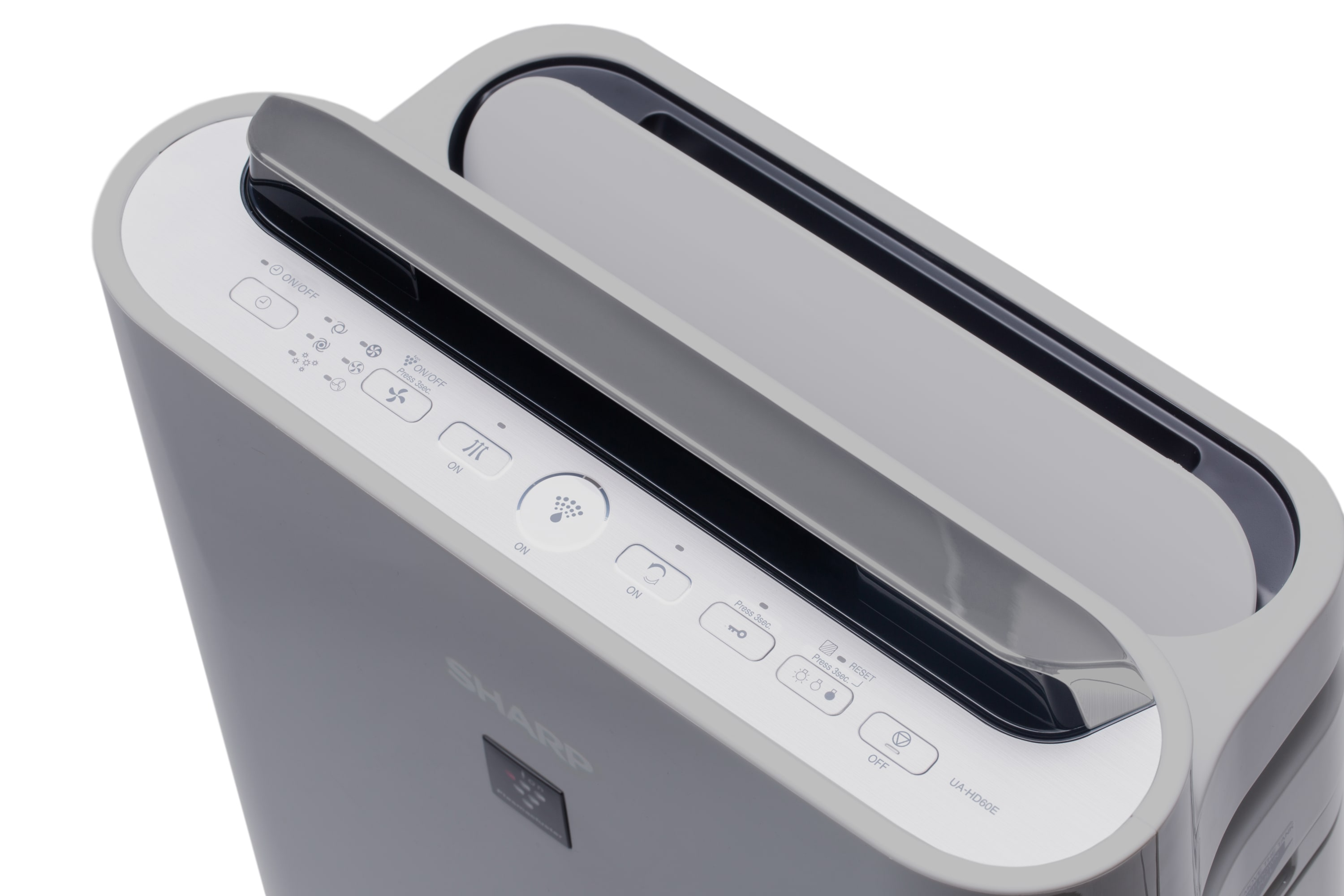 Sharp UA-HD40E-L Luftreiniger mit Plasmacluster-Ionen-Technologie Sharp UA-HD60E-L Luftreiniger ist ein stilvoller Luftwäscher mit Befeuchtungsfunktion und Plasmacluster-Ionisation. Das 2-in-1 Gerät nutzt nicht nur eine umweltfreundliche Verdunstungsmethode, sondern zeichnet sich durch seinen leisen (ab 25 dB(A)) und sparsamen (ab 5,5 Watt) Betrieb aus. Er verfügt über ein 4-stufiges Filtersystem, das durch die patentierte Plasmacluster-Technologie ergänzt wird. Dank seiner hohen Effizienz (Luftdurchsatz: bis zu 396 m³/h) und seines einzigartigen Abluftauslasses in einem Winkel von 20° eignet sich das Gerät für Räume mit einer Fläche von bis zu 48 m². Der Sharp UA-HD60E-L bietet ein 4-stufiges Filtersystem, das durch die Plasmacluster-Ionisation unterstützt wird. Die angesaugte Luft durchströmt ein dichtes Filtersystem. Die erste Reinigungsstufe ist der Vorfilter, ein Netz, das Staub und Haare auffängt. Danach erfolgt die Reinigung durch einen Kohlefilter mit 170 g Aktivkohle, der schädliche Gase und (unangenehme) Gerüche absorbiert. Mit dem HEPA-H13-Filter (Fläche von 1 m²) werden mindestens 99,97 % der mechanischen Luftverschmutzung gefiltert, wie PM2,5- und PM10-Feinstaub, Viren und Allergene. Die praktische Filteranzeige warnt Sie, sobald der Filter gewartet und gewechselt werden muss (bei einer normalen Nutzung nach ca. 720 Betriebsstunden). Das Gerät ist aus hochwertigen Materialien gefertigt und passt mit seiner hellgrauen Farbe perfekt in moderne Innenräume. Ausgestattet mit drei Sensoren für Staub, Temperatur und Luftfeuchtigkeit kann der Luftreiniger / Luftbefeuchter auch im AUTO-Modus betrieben werden. Die gemessenen Werte werden am intuitiven und übersichtlichen Display angezeigt. Zertifiziert durch die British Allergy Foundation (BAF).