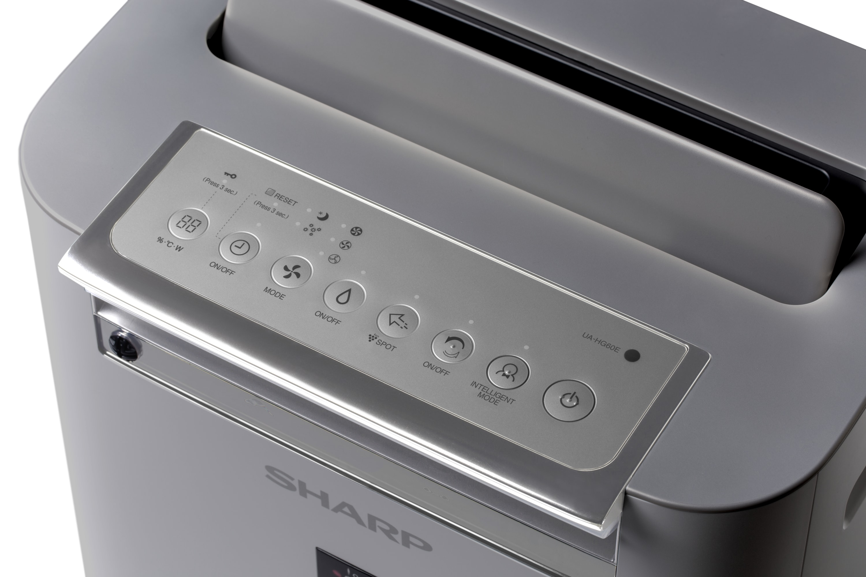 Sharp UA-HG60E-L Luftreiniger - reinigen und befeuchten mit Plasmacluster-Technologie Der Luftreiniger UA-HG60E-L von Sharp ist ein eleganter Luftwäscher mit Befeuchtungsfunktion und Plasmacluster-Ionisation Technologie. Das 2-in-1-Gerät nutzt nicht nur ein umweltfreundliches Verdunstungsverfahren, sondern zeichnet sich auch durch seinen leisen (ab 24 dB(A)) und sparsamen (5 - 72 Watt) Betrieb aus. Dank seiner hohen Effizienz (Luftdurchsatz: bis zu 408 m³/h) und seines einzigartigen Ausblaswinkels von 20° eignet sich das Gerät für Räume bis 50 m². Es verfügt über ein 3-stufiges Filtersystem, das durch die patentierte Plasmacluster-Technologie ergänzt wird. Das Gerät ist mit besseren Filtern ausgestattet als die Vorgängermodelle. Sie verfügen über ein dichteres Netz, das Schmutzpartikel bis zu einer Größe von 240 Mikrometern zurückhält. Zur Aktivkohleschicht wurde Kieselgel hinzugefügt, das dank seiner Eigenschaften Schwefel- und Stickstoffmonoxide auffängt, die unsere Konzentration und unser Wohlbefinden negativ beeinflussen. Der Luftreiniger Sharp UA-HG60E-L ist außerdem mit einem hervorragenden HEPA-H13-Filter ausgestattet, der die Luft praktisch zu 100 % sauber hält. Zusätzlich verfügt der Luftreiniger Sharp UA-HG60E-L über den Plasmacluster-Spot-Modus, mit dem praktisch alle Stoffe in einem Raum wieder frisch und sauber werden. Das Gerät erzeugt einen starken Ionenstrahl, der in die Oberfläche eindringt und so angesammelte Gerüche und Schmutzpartikel effektiv beseitigt. Erwähnenswert ist auch der CleanIon-Shower-Modus, in dem der Luftreiniger 60 Minuten lang einen starken Luftstrahl mit einer hohen Ionendosis abgibt. Sharp UA-HG60E-L Luftreiniger ist aus hochwertigen Materialien gefertigt und passt mit seiner hellgrauen Farbe perfekt in moderne Innenräume. Erwähnenswert ist auch das intelligente Display mit der Luftqualitätsanzeige - eine 7-stufige Farbskala, die uns über die Luftverschmutzung informiert. Blau steht für saubere Luft, mit zunehmender Luftverschmutzung wechselt die Farbe schrittweise auf Rot. Auf diesem Display kann der Benutzer die Luftfeuchtigkeit, die aktuelle Temperatur und den aktuellen Stromverbrauch für den entsprechenden Betriebsmodus ablesen und das Gerät bedienen. Zertifiziert von der British Allergy Foundation (BAF).