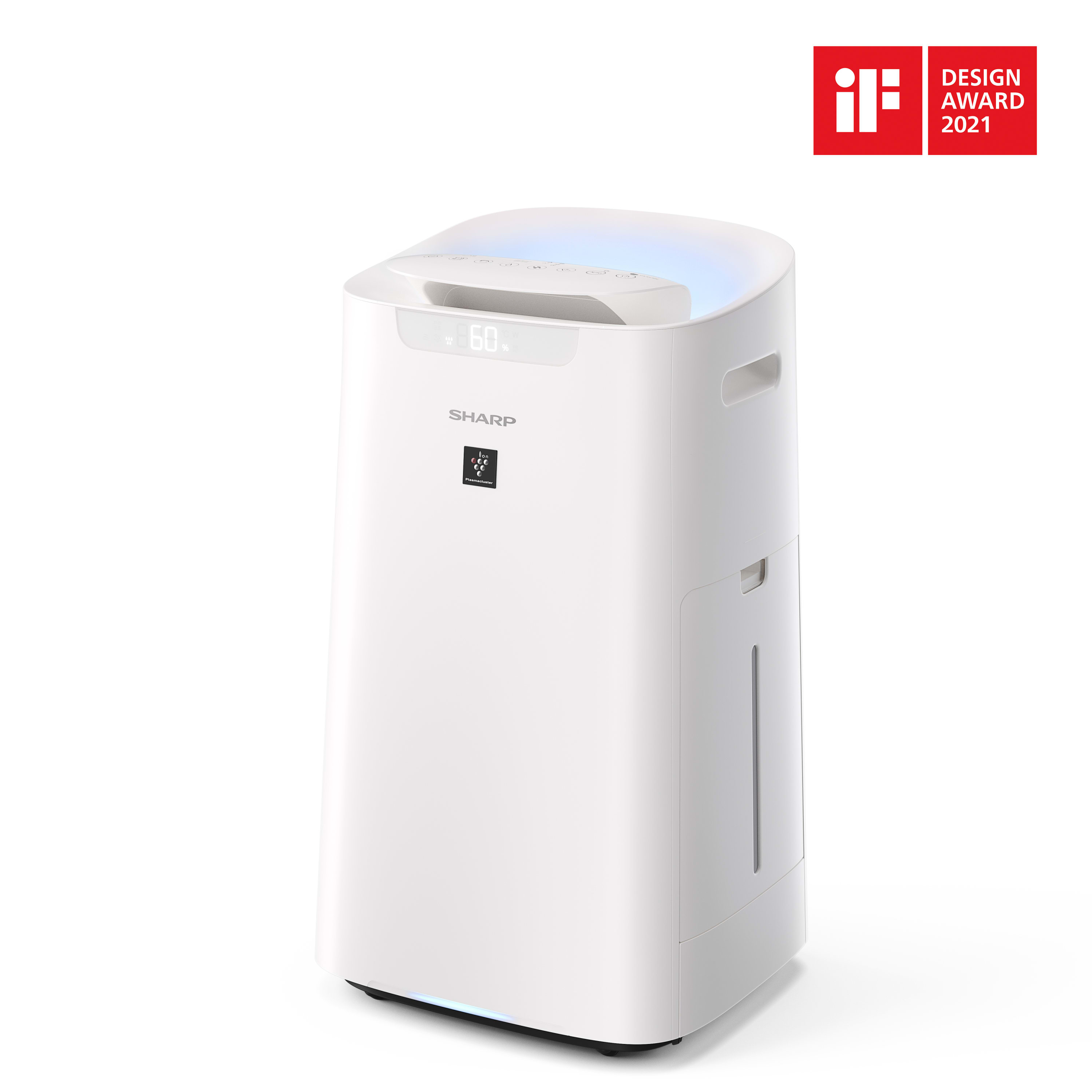 Der Sharp UA-KIL80E-W Luftreiniger mit Befeuchtungsfunktion verbessert die Luft in Räumen bis zu 62 m² auf natürliche Weise. Die Luft wird mit einem mehrstufigen Filter-System gereinigt, das mit einem hochmodernen Ionen-Generator Plasmacluster "ION 25000" kombiniert ist. Das 2-in-1-Gerät hat 5 Sensoren, die die Raumluftqualität präzise und optimal überwachen (PM2,5-, Staub-, Geruchs-, Temperatur- und Feuchtigkeitssensor) und die Messwerte auf einem Farbdisplay visualisieren. Der integrierte Lichtsensor reagiert auf Änderungen der Lichtintensität und dimmt die Beleuchtung automatisch. Auch die Luftbefeuchtung ist automatisch und liegt bei bis zu 14,4 Liter / Tag. Den Plasmacluster Luftreiniger und Befeuchter kann man über ein digitales Bedienfeld mit intuitiver Steuerung bedienen. Der Sharp UA-KIL60E-W arbeitet geräuscharm und verbraucht wenig Energie. Ideal für Allergiker und empfohlen von der British Allergy Foundation (BAF) Übrigens: Sein einzigartiges Design wurde mit dem renommierten "iF DESIGN AWARD 2021" ausgezeichnet.