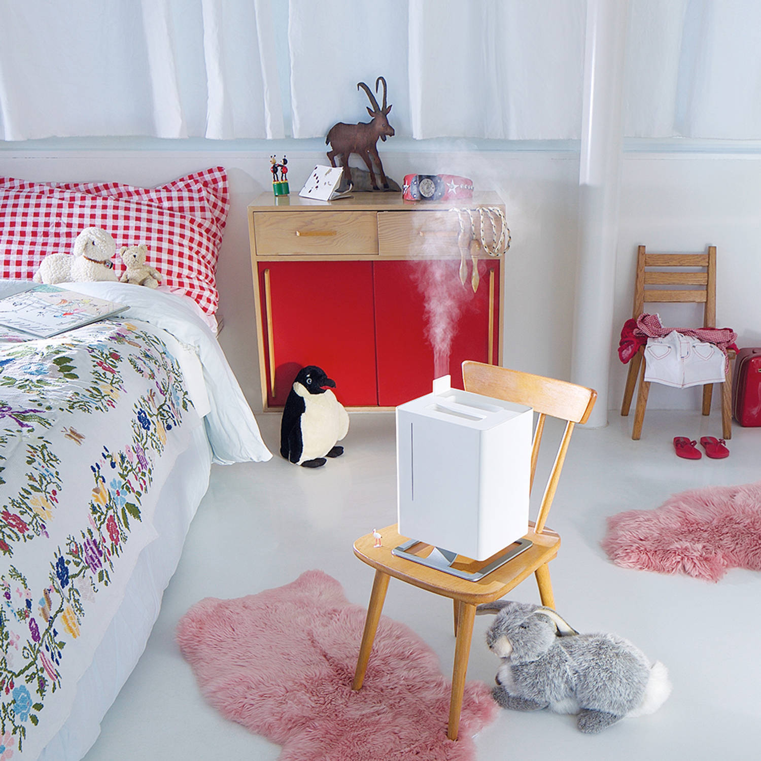 Stadler Form Anton - Ultraschall Luftbefeuchter ist erhältlich in verschiedenen Trendfarben und geeignet für Räume bis 25 m² (63 m³). Ein kompakter Luftbefeuchter der sehr effizient funktioniert und das im stilvollen Design. Die relative Luftfeuchtigkeit steigt durch den sehr feinen Nebel. Idealer Luftbefeuchter für ein kleines Schlafzimmer, Kinderzimmer, Wohnzimmer oder Büro. Stadler Form Anton Ultraschall Luftbefeuchter - Befeuchtung mit Stil!