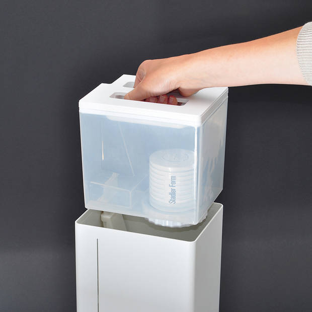 Stadler Form Anton Ultraschall Luftbefeuchter - Luftbefeuchtung mit Stil Stadler Form Anton Ultraschall Luftbefeuchter passt mit seinem wunderschönen Design bei jedem Interieur. ANTON befeuchtet geräuscharm Räume bis 25 m² mit einer Befeuchtungskapazität von 0,16 Liter / Stunde und sorgt mit einem niedrigen Stromverbrauch für eine gesunde Raumluft. Der Ultraschall-Vernebler aus extra resistentem Material ermöglicht auch den Gebrauch Ihres Lieblingsduftes (ätherische Öle) und verteilt das Aroma im Raum. Stadler Form Ultraschall Luftbefeuchter erzeugt einen hochwirksamen Nebel von winzigen Wasserteilchen und erhöht die Luftfeuchtigkeit im Raum. Er arbeitet extrem leise (28,5 - 30 dB(A). Ideal für kleines Schlafzimmer, Kinderzimmer, Wohnzimmer oder Büro. ANTON ist einfach zu bedienen (die Bedienknöpfe befinden sich an der Unterseite des Verneblers). Ebenso elegant wechselt das LED-Licht der Wasserstandsanzeige bei leerem Tank auf rot. Damit ANTON auch bei kalkhaltigem Wasser keine Spuren hinterlässt, kann er optional mit einer Antikalk Kartusche aufgerüstet werden und für eine hygienische Befeuchtung sorgt der Ionic Silver Cube®. Merkmale: Für Räume bis 25 m² Ultraschall-Luftbefeuchter Befeuchtungskapazität: 0,16 Liter / Stunde Geräuscharm (28,5 - 30 dB(A) Leistungsstufen: 2 Integriertes Aromafach (ätherische Öle) Nachtmodus Wassertank: 3 Liter Automatische Abschaltung bei leerem Tank Wasserstand ablesbar (LED Beleuchtung - dimmbar oder ausschaltbar) Erhältlich in verschiedenen Trendfarben