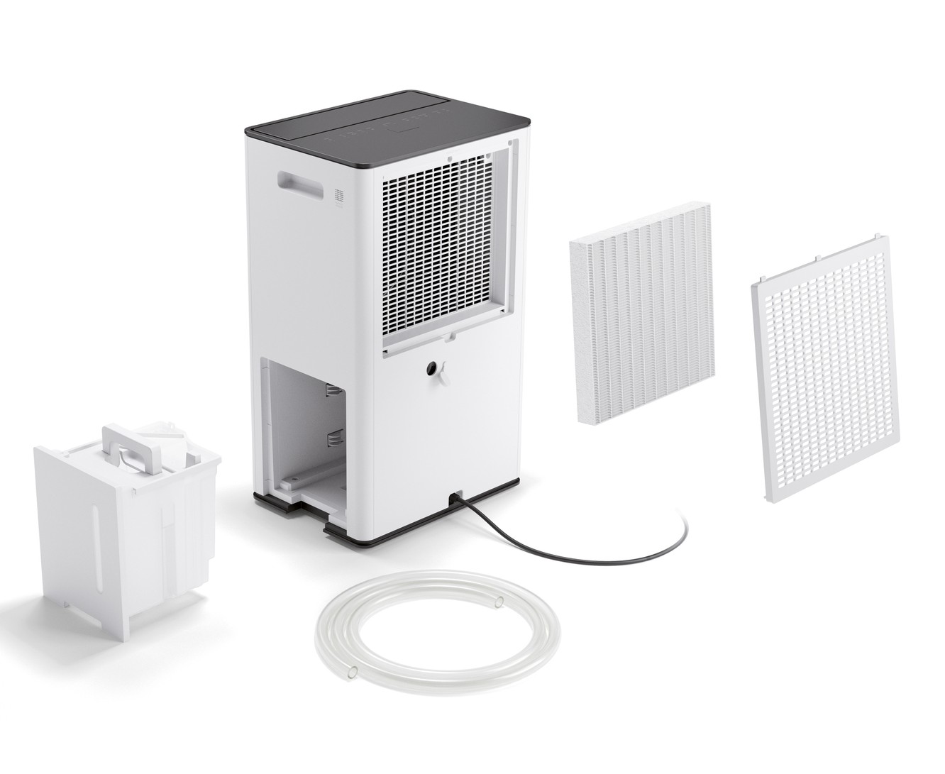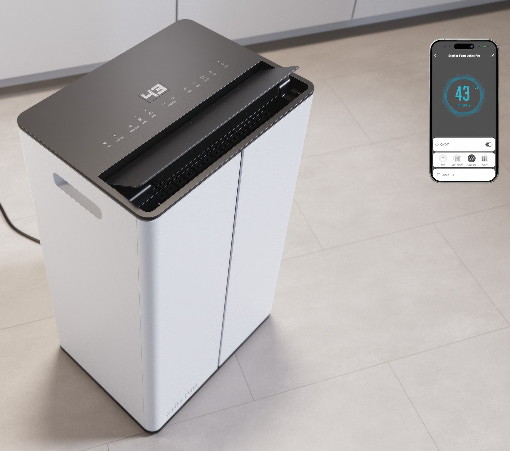 Stadler Form Lukas Pro Luftentfeuchter ist ein 2-in-1-Gerät und entzieht der Raumluft nicht nur zuverlässig überschüssige Feuchtigkeit, sondern kann auch zur Luftreinigung eingesetzt werden. Der HEPA-Filter entfernt zuverlässig Schadstoffe wie Keime, Pollen, Staub und sorgt für eine hygienische Raumluft. Dank seiner kompakten Bauweise fügt er sich unauffällig in jede Umgebung ein und lässt sich über die integrierte WiFi‑Funktion bequem per App von überall aus überwachen und steuern. Mit einer Entfeuchtungsleistung von 50 Litern pro Tag eignet er sich ideal für Räume bis 175 m². Der integrierte Hygrostat ermöglicht eine unkomplizierte Bedienung und sorgt gleichzeitig dafür, dass die gewünschte Luftfeuchtigkeit zuverlässig eingehalten wird. Weitere Komfortfunktionen sind ein Wäschetrocknungsmodus und ein Nachtmodus für besonders leisen Betrieb. Dank der Möglichkeit eines permanenten Kondenswasserablaufs eignet er sich auch für den Dauerbetrieb. Dieser Luftantfeuchter aus der Pro-Serie kommt mit einer 5-Jahres-Garantie. Designed by Matti Walker