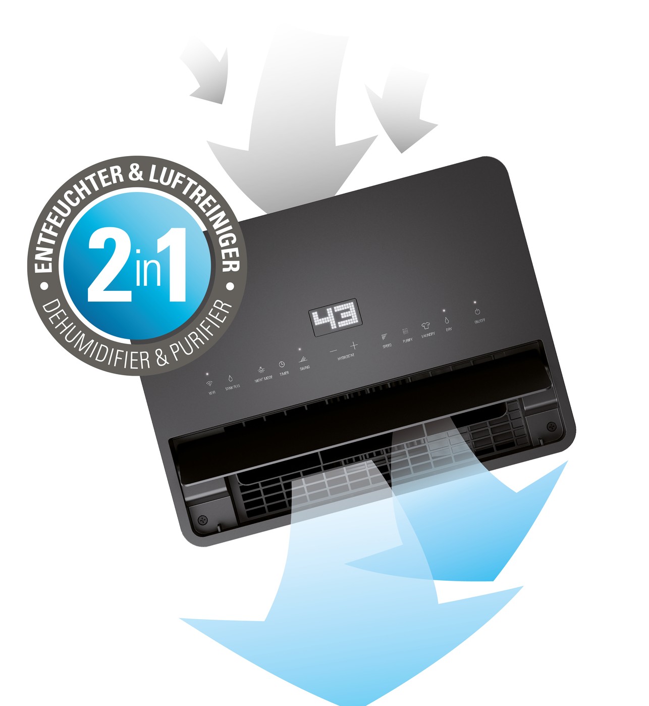 Stadler Form Lukas Pro Luftentfeuchter ist ein 2-in-1-Gerät mit PROFI-Superpower Stadler Form Lukas Pro Luftentfeuchter sorgt gleichzeitig für entfeuchtete und gereinigte Luft und für ein Raumklima, in dem man sich rundum wohlfühlt. Lukas Pro entfernt täglich bis zu 50 Liter Feuchtigkeit aus der Raumluft und eignet sich ideal für Räume bis 175 m². Er entzieht der Raumluft überschüssige Feuchtigkeit und verhindert hiermit die Bildung von Kondenswasser, Schimmel, Feuchtigkeit und Kälte im Raum (trockene Luft ist wärmer). Auch Ihre Wäsche trocknet schneller, dank des verstellbaren Luftauslasses. Die Bedienung von Lukas Pro erfolgt entweder direkt am Gerät oder bequem über die integrierte WiFi‑Funktion, mit der sich der Luftentfeuchter per Smartphone‑App von überall aus steuern und überwachen lässt. Mit vier Entfeuchtungsstufen und einem Timer (1–9 Stunden oder 24‑Stunden‑Zeitschaltuhr in der App) bietet er eine flexible Anpassung des Betriebs. Ein integrierter, digitaler Hygrostat ermöglicht zudem die präzise Einstellung einer gewünschten Zielfeuchtigkeit. Im Wäschetrockner‑Modus verteilt Lukas dank seiner Schwenkfunktion die Luft gleichmäßig im Raum und sorgt so für besonders schnelles Trocknen von feuchter Wäsche. Für die Nacht steht ein leiser Nacht‑Modus zur Verfügung, der diskret und geräuscharm arbeitet. Zu den weiteren Komfort‑ und Sicherheitsmerkmalen von Lukas gehören mehrere automatische Abschaltfunktionen: bei vollem Wassertank beim Erreichen der eingestellten Zielfeuchtigkeit nach Ablauf der eingestellten Betriebsdauer (1–9 Stunden über die Zeitschaltuhr) Zusätzlich verfügt er über eine Kindersicherung sowie eine automatische Abtaufunktion, die den Einsatz auch in unbeheizten Räumen bis 5 °C ermöglicht. Das der Luft entzogene Kondenswasser wird entweder im 4,2‑Liter‑Wassertank gesammelt oder über den Drainageschlauch direkt abgeführt – ideal für den permanenten Betrieb. Dank seitlicher Tragegriffe und versteckter Transportrollen ist Lukas mobil und flexibel einsetzbar und lässt sich mühelos von Raum zu Raum bewegen. Merkmale: Für Räume bis 175 m² Luftentfeuchter und Luftreiniger mit WiFi HEPA H11-Filter entfernt > 99,99 % von Feinstaub und Allergenen Entfeuchtungsleistung: 50 Liter / Tag Einfache Bedienung am Gerät: Touchpanel WiFi-Funktion: smarte Bedienung per App 4 Leistungsstufen Energieeffizient Wäschetrockner-Modus: In diesem Modus entzieht der Luftentfeuchter der Luft in der Umgebung der Wäsche kontinuierlich Feuchtigkeit und verkürzt so die Trocknungszeit. Nachtmodus: flüsterleise ab 38 dB(A) 3D-Schwenkfunktion für optimale Luftzirkulation Waschbarer Luftfilter Integrierter digitaler Hygrostat Timer: 1 - 9 Stunden-Zeitschaltuhr Geräuscharm: 38 - 55 dB(A) Wassertank: 5,2 Liter / Wassertankanzeige Automatisches Abschalten bei vollem Wassertank Möglichkeit eines permaneten Kondensatanschlusses Schlauch für permanente Drainage im Lieferumfang enthalten Automatische Abtaufunktion Kindersicherung Einfach zu transportieren - Tragegriffe & Transportrollen Design by Matti Walker (CH) EXTRA: 5-Jahre-Garantie vom Hersteller Die Pro Series von Stadler Form steht für besonders leistungsstarke, langlebige und innovative Haushaltsgeräte mit einem stilvollen, modernen Design. Jedes Gerät dieser Serie wird mit einer verlängerten Garantie von fünf Jahren ausgeliefert und überzeugt durch Qualität, Zuverlässigkeit und eine außergewöhnlich lange Lebensdauer.