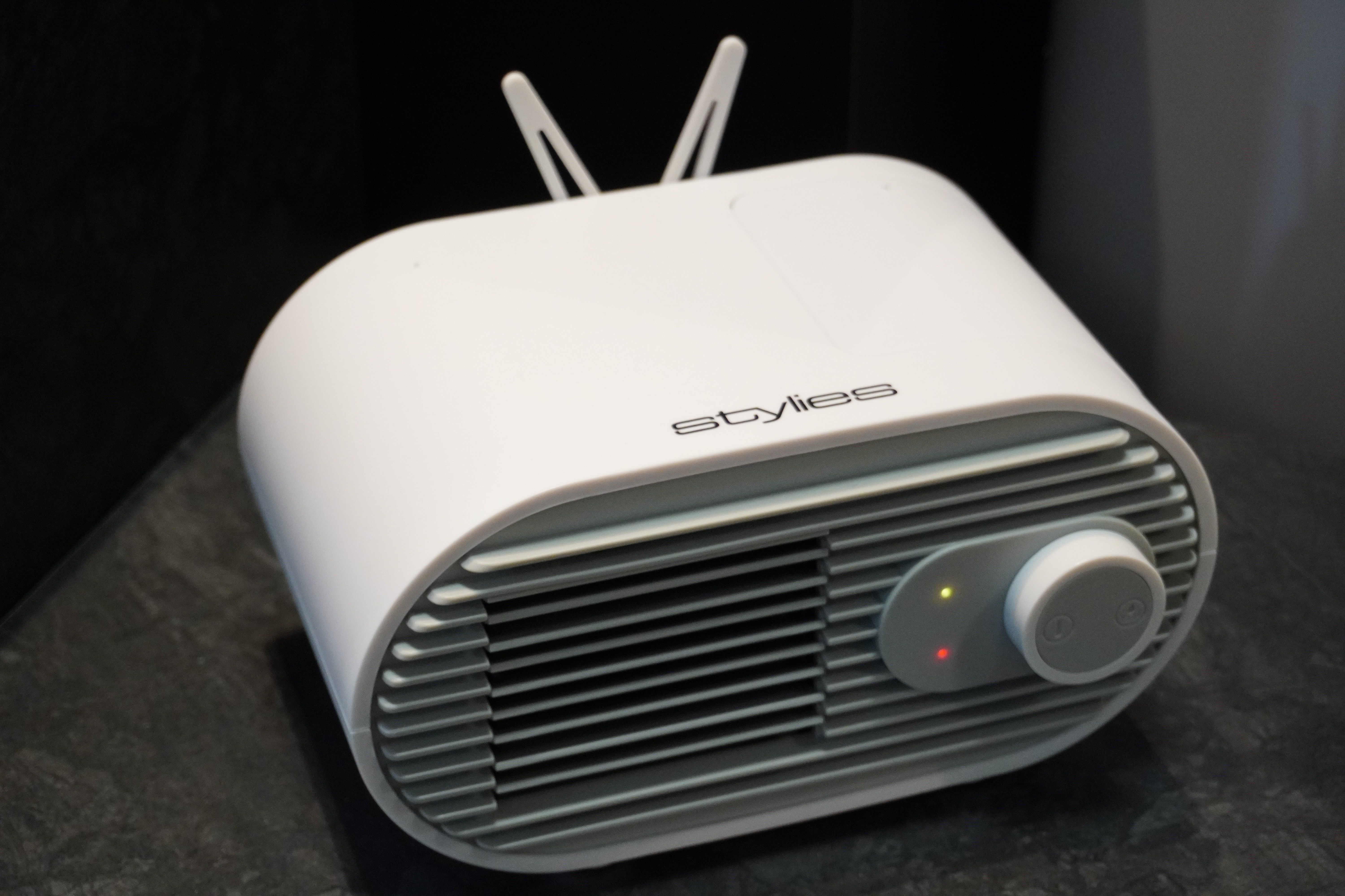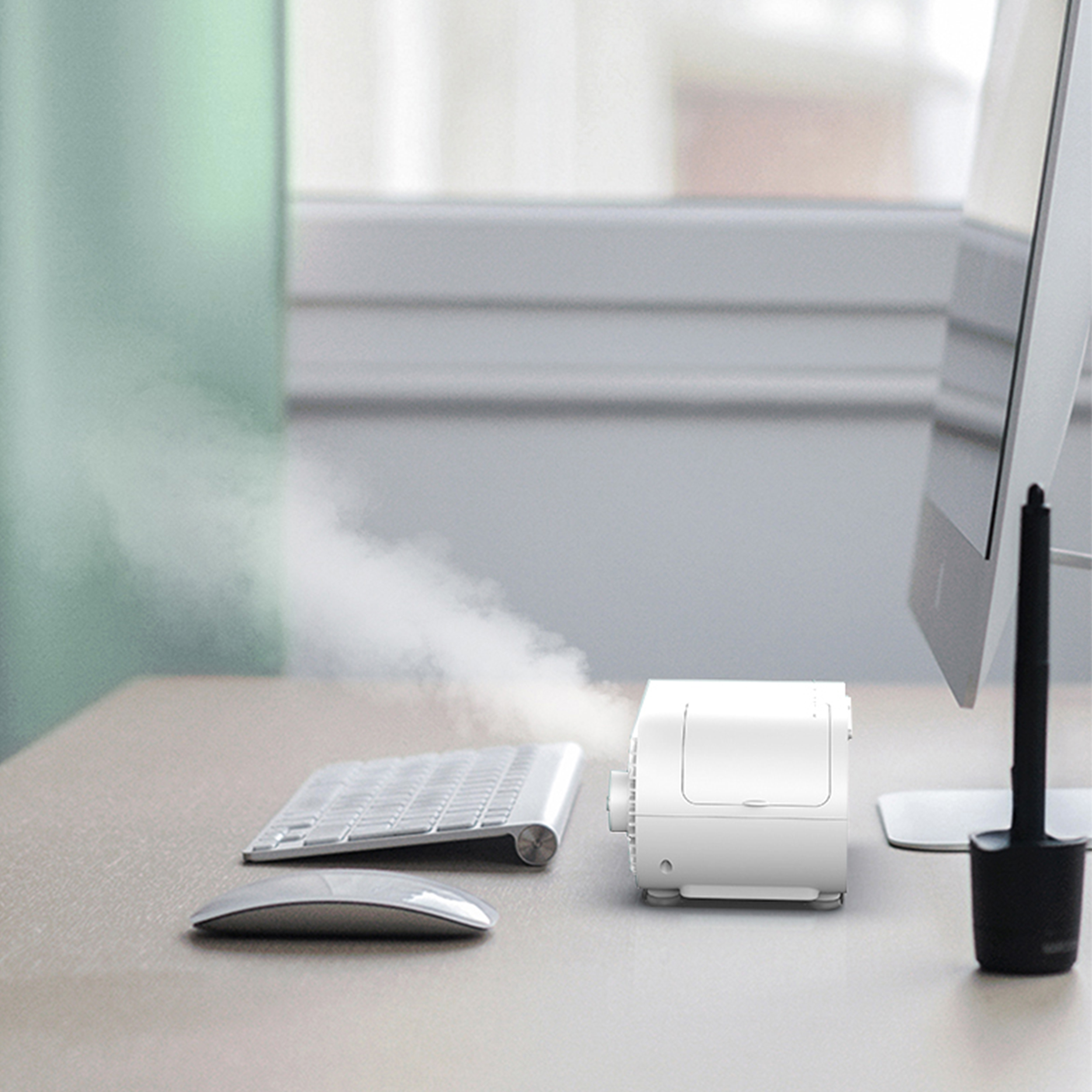 Stylies Maia Mini-Luftkühler mit Ultraschall-Technologie kühlt die Luft, wo Sie es wollen. Der kleine, mobile Luftkühler ist ideal fürs Büro, in der Küche oder im Schlafzimmer – mit multifunktionaler Halterung für Ihr Smartphone. Die Bedienung der Funktionen ist einfach und clever. Trotz seines kleinen Wassertanks mit einem Fassungsvermögen von 260 ml erreicht dieser Winzling fast die Kühlleistung eines viel größeren Luftkühlers. MAIA eignet sich für Bereiche bis 25 m² mit einer Külleistung von 0,96 Liter / Tag.