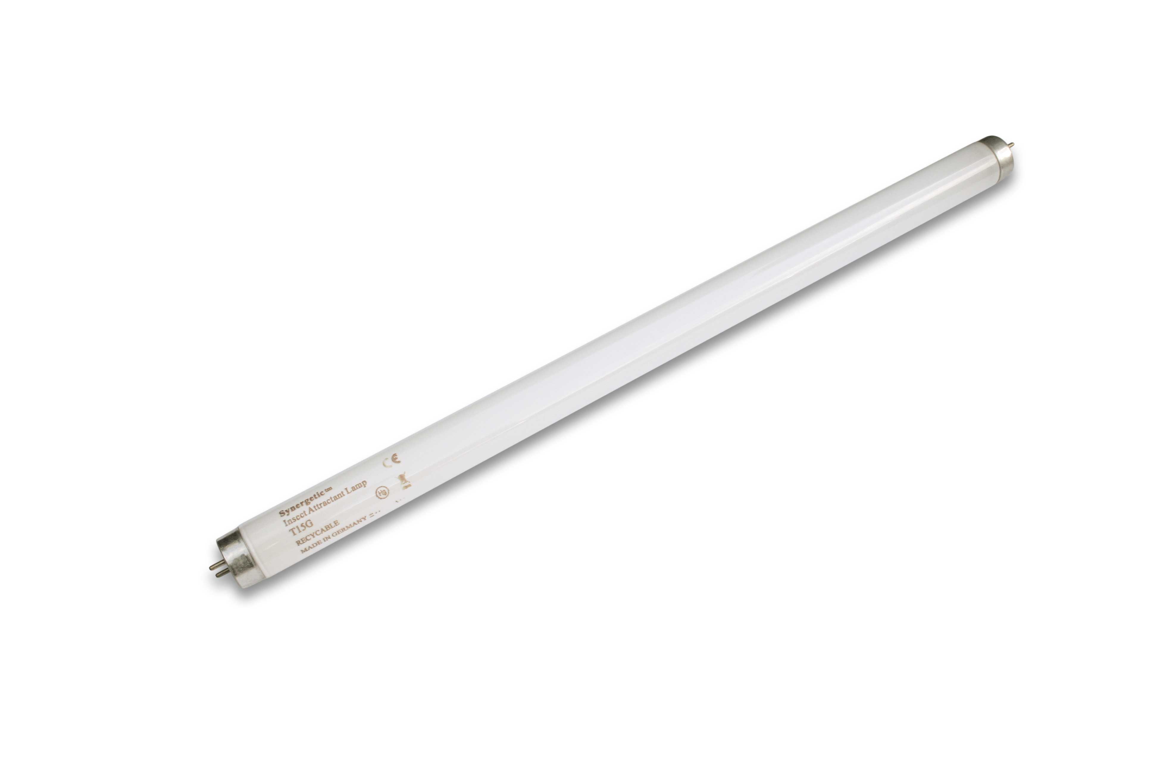Synergetic™ TGX15-18 Ersatz-UV-A Lampe für Insect-O-Cutor Uplighter, PlusLight® 30, Nectar™, Allure®, Edge® Fliegenfalle Ersatz-Leuchtstoffröhre für Ihre Insect-O-Cutor Uplighter, PlusLight® 30, Nectar™, Allure®, Edge® Fliegenfalle. Diese leistungsstarke UV-A Lampe von Synergetic sorgt für eine effiziente Lichtausgabe (Grünlicht) und garantiert eine hohe Fangquote. Der Austausch ist kinderleicht. UV-Lampen dürfen jedoch nur in Innenräumen verwendet werden. Die UV-Röhren der Synergetic®-Reihe erkennt man an ihrem hellen Grünlicht. Diese UV-Lampen wurden entwickelt, um ein weitaus breiteres Spektrum an Fluginsekten anzulocken als herkömmliche blaue UV-Lampen. Die patentierte Technologie (basierend auf eine Phosphormischung) ermöglicht die Nutzung einer größeren "Zwei-Peak"-Wellenlänge (Dual-Wellenlänge) von 368nm und 540nm. Hierdurch werden nicht nur Stubenfliegen, Fruchtfliegen angelockt und vernichtet, sondern auch Gewächshausmottenschildlaus (Weiße Fliege), Motten, Blattlaus, Thripse, (tropische) Lagerhausmotte und zahlreiches andere lästiges Ungeziefer. Die Resultate zahlreicher Untersuchungen, die von unabhängigen Entomologen und Prüflaboren durchgeführt wurden, belegen die Vorzüge grüner Beleuchtung in Kombination mit UV. Außerdem ist die Lebensdauer der Synergetic® UV-Röhre im Vergleich zu herkömmlichen UV-Lampen, die bereits nach 6 Monaten bis zu 40 % ihrer Leistung verlieren, länger, da der grüne Leuchtstoff sich kaum verringert. Merkmale: Für Insect-O-Cutor Uplighter, PlusLight® 30, Nectar™, Allure®, Edge® Fliegenfalle UV-A Lampe mit Grünlicht Dual-Wellenlänge 368 - 540nm Leistung 15 Watt Splitterfrei: Nein Einfacher und werkzeugfreier UV-Röhrenwechsel Lange Lebensdauer: 8000 Stunden Verwendung: nur in geschlossenen Räumen (Innenräumen) Gewicht 0,10 kg Länge: 435 mm Diameter: 240 mm
