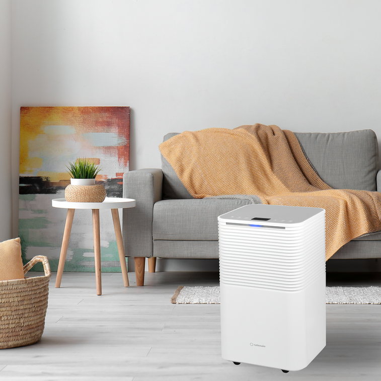 Turbionaire EPI 12 WiFi Luftentfeuchter sorgt rasch und effektiv für eine gesunde Luftfeuchtigkeit bei Ihnen daheim oder im Büro (Bereichen bis 50 m²). Der moderne und kompakte Luftentfeuchter mit übersichtlichem LED-Display und gebrauchsfreundlicher Bedienung auf der Oberseite entzieht der Luft 12 Liter Wasser pro Tag. Dieser Lufttrockner ist mit einem WLAN (WiFi) ausgerüstet und kann mit der SMART Life-APP auch auf Abstand bedient werden - kompatibel mit Alexa & Google. Zur den weiteren Funktionen gehören ein AUTO-Modus, Schlafmodus, Kindersicherung und ein LED-Feuchtigkeits-Indikator, der an der Vorderseite des Gerätes ein einfaches Ablesen ermöglicht. Er wechselt die Farbe entsprechend der Luftfeuchtigkeit im Raum: Blau: unter 45 % Grün: zwischen 45 und 65 % Rot: über 65 % Turbionaire EPI 12 Kondensationsentfeuchter ist geräuscharm, einfach zu transportieren und arbeitet mit dem umweltfreundlichen Kältemittel R290.