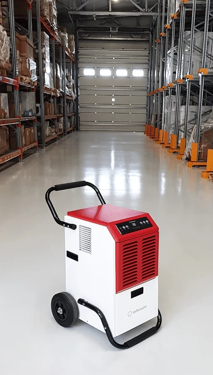 Turbionaire PRO 50N Bautrockner für den Einsatz in anspruchsvollen und/oder professionellen Umgebungen. Mit einer Entfeuchtungsleistung von 51,4 Liter / Tag und einem Luftdurchsatz von 350 m³/h sorgt dieser leistungsstarke professionelle Luftentfeuchter für eine gesunde relative Luftfeuchtigkeit in Bereichen bis zu 250 m². Turbionaire PRO 50N ist ein tragbarer Luftentfeuchter mit robuster Konstruktion und stabilem Gehäuse, der auch unter schwierigen Bedingungen zuverlässig trocknet. Das Kondenswasser (der Luft entzogene Feuchtigkeit) wird entweder im abnehmbaren Wassertank gesammelt oder direkt über einen Ablaufschlauch abgeleitet. Der Profi bei zu feuchter Luft oder zur Beseitigung von Wasserschäden in Lagerhallen, auf Baustellen, in Fabriken, Kellern, Bibliotheken oder Museen.