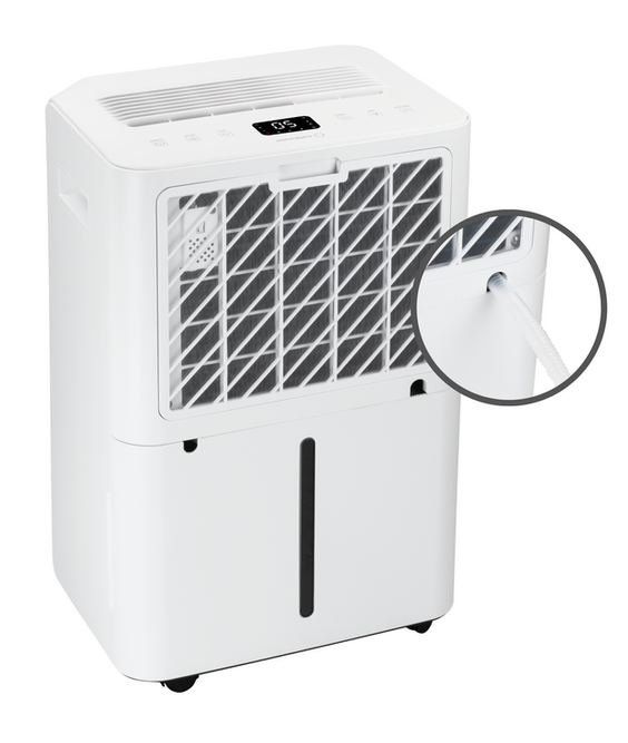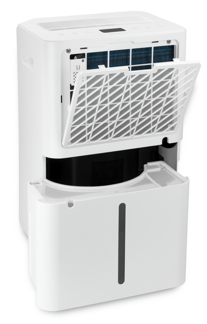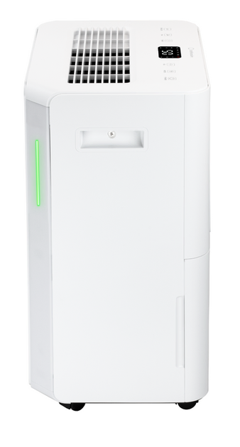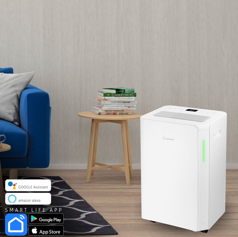 Turbionaire REVI 20 WIFI ION Luftentfeuchter ist energieeffizient und gewährleistet eine gesunde Luftfeuchtigkeit bei Ihnen zu Hause oder im Büro (Räume bis 100 m²). Der moderne und kompakte Luftentfeuchter mit übersichtlichem LED-Display und gebrauchsfreundlicher Bedienung auf der Oberseite entzieht der Luft 20 Liter Wasser pro Tag. Dieser Kondens-Lufttrockner ist mit einem WLAN (WiFi) ausgerüstet und kann mit der SMART Life-APP auch auf Abstand bedient werden - kompatibel mit Alexa & Google. Die Ionisierungsfunktion hilft Schadstoffe aus der Luft zu entfernen. Zu den weiteren Funktionen gehören ein AUTO-Modus, Schlafmodus, Kindersicherung und ein LED-Feuchtigkeits-Indikator, der an der Vorderseite des Gerätes ein einfaches Ablesen ermöglicht. Er wechselt die Farbe entsprechend der Luftfeuchtigkeit im Raum: Blau / Grün / Rot. Turbionaire REVI 20 WIFI ION Kondensationsentfeuchter ist geräuscharm, einfach zu transportieren und arbeitet mit dem umweltfreundlichen Kältemittel R290.