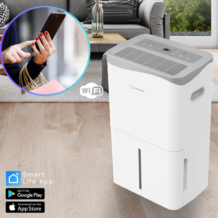Turbionaire SENSO 50 MAX WiFi Luftentfeuchter sorgt rasch und effektiv für eine gesunde Luftfeuchtigkeit mit einer Entfeuchtungskapazität von 50 Liter / Tag in Räumen bis 220 m². Der moderne und kompakte Luftentfeuchter mit WLAN-Verbindung (WiFi) kann einfach über die Smart Life-App, verfügbar in Google Play und im App-Store, ferngesteuert werden. Selbstverständlich, auch kompatibel mit den Sprachassistenten von Amazon und Google. Ein leistungsstarker Kompressor-Lufttrockner mit einem 5,1 Liter- Wassertank und elektronischem Hygrostat sowie einer Schnellkupplung für den kontinuierlichen Kondensatablauf. Zu den weiteren Funktionen gehören ein AUTO-Modus, Schlafmodus, Kindersicherung und Wäschetrockner-Modus. Der Turbionaire SENSO ist geräuscharm, einfach zu transportieren und arbeitet mit dem umweltfreundlichen Kältemittel R290.