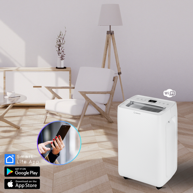 Turbionaire SENSO N20 WiFi Luftentfeuchter sorgt rasch und effektiv für eine gesunde Luftfeuchtigkeit mit einer Entfeuchtungskapazität von 20 Liter / Tag in Räumen bis 100 m². Der moderne und kompakte Luftentfeuchter mit WLAN-Verbindung (WiFi) kann einfach über die Smart Life-App, verfügbar in Google Play und im App-Store, ferngesteuert werden. Selbstverständlich, auch kompatibel mit den Sprachassistenten von Amazon und Google. Ein leistungsstarker Kompressor-Lufttrockner mit einem 4,5-Liter- Wassertank und elektronischem Hygrostat sowie einer Schnellkupplung für den kontinuierlichen Kondensatablauf. Zu den weiteren Funktionen gehören ein AUTO-Modus, Schlafmodus, Kindersicherung und Wäschetrockner-Modus. Der Turbionaire SENSO ist geräuscharm, einfach zu transportieren und arbeitet mit dem umweltfreundlichen Kältemittel R290.