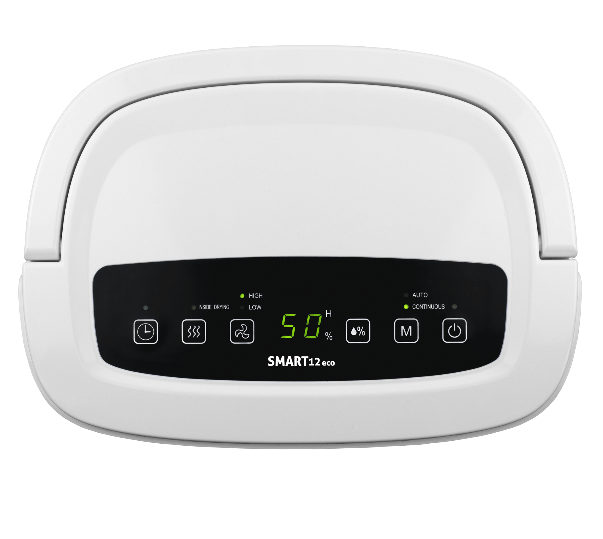 Turbionaire SMART 12 ECO Luftentfeuchter sorgt rasch und effektiv für eine gesunde Luftfeuchtigkeit mit einer Entfeuchtungskapazität von 12 Liter / Tag in Räumen bis 50 m². Die zahlreichen Funktionen, wie der AUTO-Modus oder Wäschetrockner-Modus, sowie Einstellungen können einfach über das digitale Soft-Touch-Bedienfeld an der Oberseite des Gerätes gewählt werden. Der moderne, leistungsstarke und energieeffiziente Kompressor-Lufttrockner ist mit einer Wasserstandsanzeige an der Vorseite des Wassertanks (1,8 Liter), einem elektronischen Hygrostat sowie einer Schnellkupplung für den kontinuierlichen Kondensatablauf ausgestattet. Der Turbionaire SMART ist geräuscharm, einfach zu transportieren und arbeitet mit dem umweltfreundlichen Kältemittel R290.