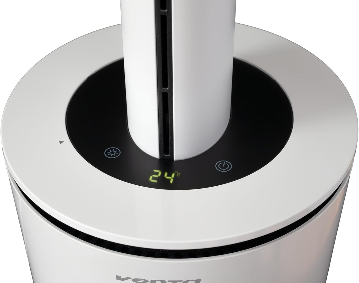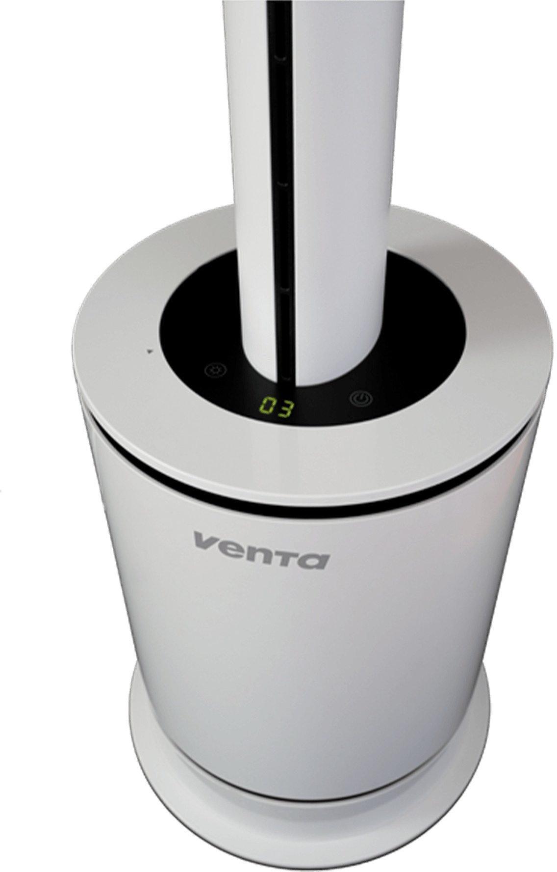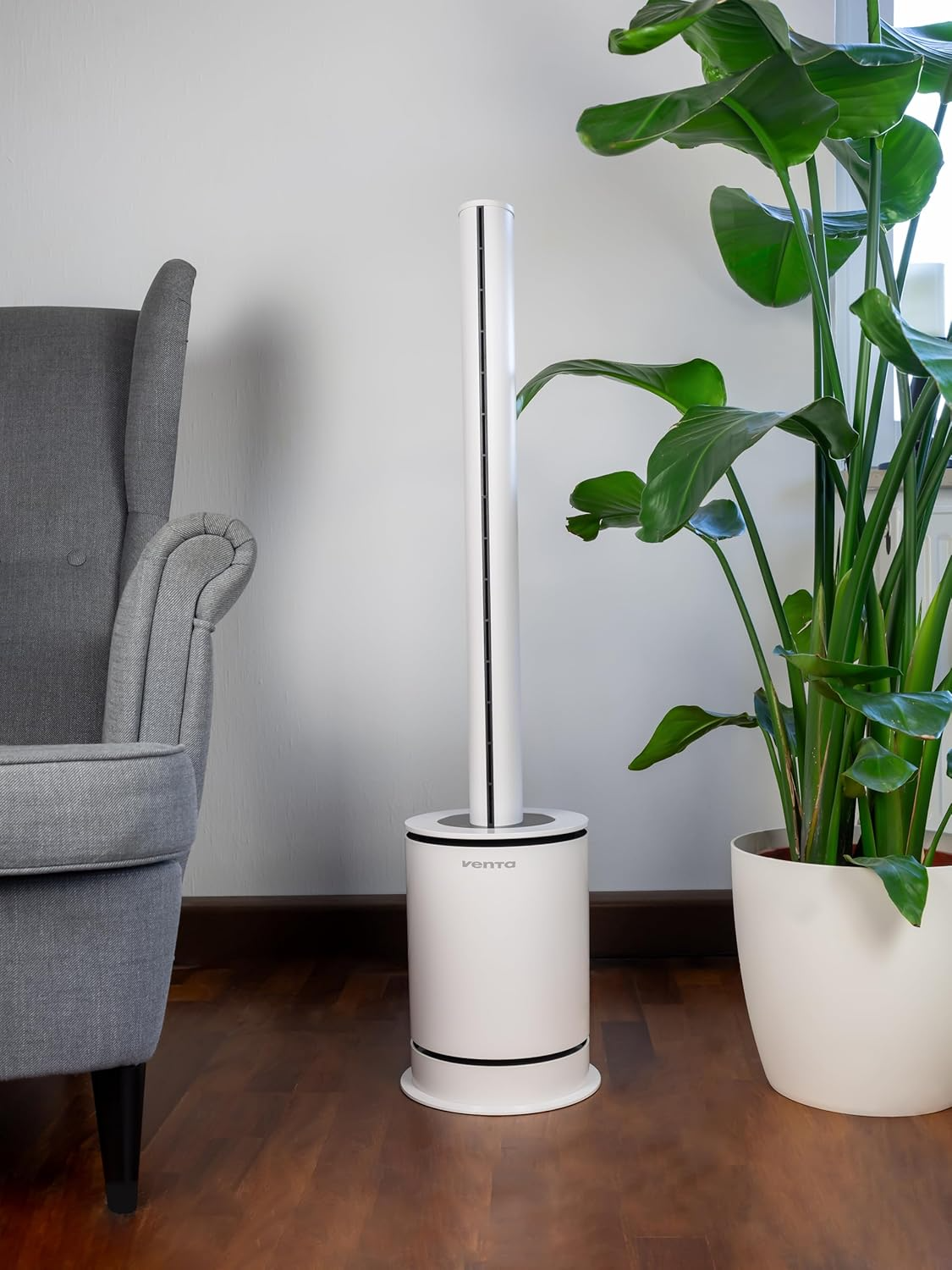 Der Venta AP100 Hybrid 3-in-1-Luftreiniger mit Ventilator und Heizlüfter sorgt ganzjährig für Komfort Venta AP100 Hybrid Luftreiniger ist ein innovatives 3-in-1-Gerät, das Luftreinigung, Kühlung und Heizen in einem eleganten Design vereint: Luftreiniger mit hocheffizienter Filtertechnologie: HEPA H13-Filter & Grobstaubfilter zur Entfernung von 99,95 % aller Schadstoffe, Pollen, Staubpartikel und Allergene. Ventilator (Kühlmodus): Eine Abkühlung gefällig? Einfach eine der 9 Leistungsstufen wählen und dank der Air Jet Technologie wird die gereinigte Luft über einen Windkanal nach oben gedrückt. Die frische Kühle ist dank der 80°-Weitwinkel-Luftstromrotation im ganzen Raum spürbar. Heizfunktion (Wärmemodus): Angenehme Wärme für kalte Tage? Stellen Sie die gewünschte Temperatur (bis 30 °C) und die gewünschte Leistungsstufe (1-4) ein. Dank des PTC-Keramik-Heizelements und der intelligenten Sensorik wird die Luft in kurzer Zeit erwärmt und über die 80°-Weitwinkel-Luftstromrotation an den Raum abgegeben. Der Venta AP100 sorgt für eine wohlige Wärme oder erfrischende Abkühlung und filtert gleichzeitig 99,97 % der Luftschadstoffe bis zu einer Größe von 0,3 μm. Das integrierte UV-C Licht fungiert als UV-Sterilisator und eliminiert bis zu 99,9 % der Keime, Bakterien und Viren. Die Luft wird über die 360° Filtration aus der Umgebung angesaugt und hierbei gründlich über das Filtersystem gereinigt. Anschließend gibt der AP100 die saubere Luft über den Luftkanal mit 80°-Weitwinkel-Rotation an den Raum ab – bis in die letzte Ecke. Die Bedienung ist kinderleicht und smart und erfolgt über das Touchdisplay, die Fernbedienung, Sprachsteuerung (Alexa, Google) oder APP. Sie können aus zahlreichen Funktionen wie Auto-Modus, Sleep-Modus, Turbo-Modus oder Nacht-Modus wählen. Die 9 Leistungsstufen ermöglichen eine optimale Performance sowohl im Kühl- als auch im Heizmodus, auf Ihre Bedürfnisse abgestimmt. Dank seines energieeffizienten Kupfermotors verbraucht der AP100 Hybrid-Luftreiniger in der Ventilatorfunktion nur ca. 35 Watt. Das entspricht etwa dem Verbrauch einer Glühbirne. Wartung oder Filterwechsel nötig? Venta AP100 informiert Sie rechtzeitig, damit eine gleichbleibend hohe Luftreinigungseffizienz gewährleistet ist. Der integrierte Sicherheitssensor schützt bei Überhitzung oder Umkippen – ideal für Haushalte mit Kindern oder Tieren. Merkmale: Für Bereiche bis 70 m² 3-in-1 Hybrid Gerät: Luftreiniger, Ventilator & Heizfunktion Einfache Bedienung via Touchdisplay, Fernbedienung, App- und Sprachsteuerung (nur 2,4 GHz WLAN) Übersichtliches LED-Display Hocheffiziente Filtertechnologie: HEPA H13-Filter & Grobstaubfilter: entfernt bis zu 99,97 % aller Luftpartikel wie Feinstaub, Viren, Pollen bis zu einer Größe von 0,3 μm UV-C-Licht (UV-Sterilisation): entfernt bis zu 99,9 % der Keime, Bakterien, Viren Kraftvoller Heizlüfter: PTC-Keramik-Heizelement und intelligente Sensorik (Temperatursensor) programmierbar bis 30 °C Betriebstemperatur: 1 - 30 °C Optimale & natürliche Luftverteilung durch 80° Rotation (Reichweite Luftstrom bis zu 6 m) Lüfterstufen: 9 (Kühlmodus), 4 (Heizmodus) Turbo-Modus: maximale Leistung auf Knopfdruck Timer-Modus: Zeitschaltuhr von 1 - 8 Stunden Sleep-Modus: reduziert automatisch die Lüftergeschwindigkeit für einen leisen Betrieb Auto-Modus: Zeitschaltuhr (bequeme Timer-Funktion) mit automatischer Abschaltung Kupfermotortechnologie ermöglicht einen energieeffizienten und geräuscharmen Betrieb Sicherheitssensor, Kipp- und Überhitzungsschutz Abmessungen: 23 x 23 x 98,6 cm Gewicht 4,2 kg Der Venta AP100 Hybrid ist ideal für gut isolierte Räume und überzeugt mit seinem modernen Design, leisen Betrieb und smarter Steuerung. Der Allrounder auch für Ihr Zuhause!