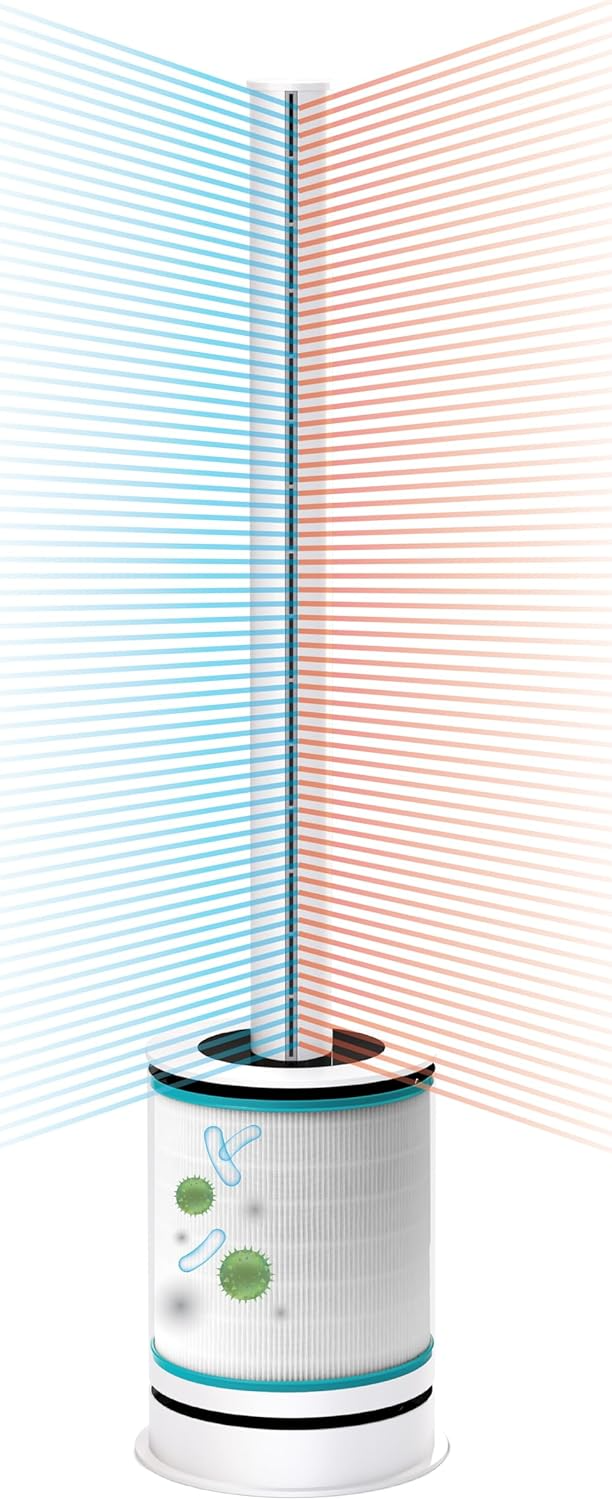 Venta AP100 Hybrid 3-in-1 Luftreiniger ist ein kompakter Alleskönner. Dieses innovative Gerät kombiniert einen leistungstarken Luftreiniger, mit einem effizienten Ventilator und einem sicheren Heizlüfter. Die perfekte Lösung für ganzjährigen Komfort und gesunde Luft in Bereichen bis 70 m². Im Winter sorgt er für gleichmäßig erwärmte Raumluft, im Sommer für eine angenehme, kühlende Luftzirkulation, dabei filtert er 99,97 % aller Luftschadstoffe (hocheffiziente Filtertechnologie). Über das Touchdisplay, die Fernbedienung oder einfach per App können die gewünschte Leistungsstufe (1-9) sowie die Temperatur, Zeit (Timer) oder einer der vorprogrammierten Modi (AUTO/Turbo/Sleep) gewählt werden. Zusätzlichen Schutz bieten der Anti-Kipp-Sockel und der integrierte Hitze- und Überhitzungsschutz. Dank seines energieeffizienten Motors beträgt der Stromverbrauch nur ca. 35 Watt (im Ventilatormodus).