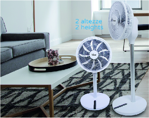 Bimar V360 Ventilator kann als Tisch- oder Standventilator (Boden) verwendet werden und verfügt über eine 3D-Luftverteilung mit elektronischer Steuerung. Dank des einstellbaren Oszillationseffekts (links/rechts und in einem 30°, 60° oder 120° Ausblaswinkel) wird die Luft gleichmäßig im Raum verteilt. Der Bimar V360 ist serienmäßig mit einer Fernbedienung ausgestattet und bietet 12 Ventilatorgeschwindigkeiten. Mit dem Schlafmodus kann der Ventilator auch während der Nacht bedenkenlos arbeiten lassen.
