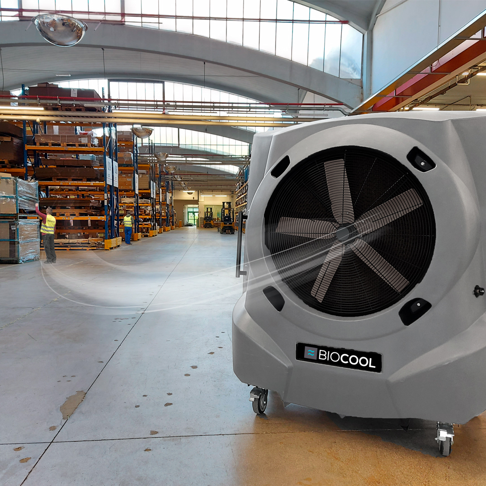 Die Biocool-Luftkühler sind eine energieeffiziente und wirtschaftliche Alternative zu herkömmlichen Klimaanlagen. Dadurch können durch den Einsatz dieser Geräte erhebliche Kosteneinsparungen erzielt werden. Was sind die Vorteile von Biocool Wind Force 10? effizienter und langlebiger Spotkühler für industrielle Anwendungen leiser Betrieb, auch bei hohem Luftstrom Auto-Swing für die Oszillation des Luftstroms großer Wassertank für längere Nutzung große und robuste Räder mit Bremsen für einfache Bewegung manuelle Befüllung des Wassertanks oder Anschluss für permanente Wasserversorgung möglich korrosionsbeständiges Kunststoffgehäuse Inklusive Luftfilter für einfache Wartung Fernbedienung zur einfachen Regelung der Ventilatorgeschwindigkeit ausgestattet mit UV-Lampe, die das Wasser desinfiziert Besonders benutzerfreundlich und einfach zu bedienen Geeignet für die Kühlung von 400 m2. Folgende Modelle sind in dieser Luftkühlerserie erhältlich: Wind Force 4 Wind Force 7 Wind Force 10 Die Produktspezifikationen zeigen die einzigartigen Eigenschaften des Wind Force 10-Geräts.