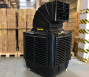 Master BCB 19 Verdunstungskühler für eine sofortige (Spot) Kühlung ohne Chemikalien oder Kältemittel! Master BCB 19 adiabatische Luftkühler ist ein BIO-Cooler der mit dem natürlichen Prinzip der Zerstäubung von Wasser zur Senkung der Umgebungstemperatur (adiabatische Kühlung) verwendet werden kann. Er ist einfach in der Anwendung und zu transportieren. Der Verdunstungskühler ist einfach zu transportieren und schnell einsatzbereit. Er funktioniert nach dem Plug-&-Play-Prinzip: Wasserzufuhr und Strom anschließen und von der angenehmen, kühlen Luft genießen. Bei Bedarf kann der Master BCB 19 auch für punktuelle Kühlung (Spot cooler) verwendet werden. Er verfügt über einen Luftdurchsatz von 18.000 m³/h in Räumen bis 250 m² und ist IP44-klassifiziert. Master-Luftkühlern reduzieren die CO₂-Belastung im Vergleich zu Klimaanlagen erheblich und sorgen für eine saubere Luft (weniger Bakterien und Viren). Wie funktioniert ein adiabatischer Luftkühler und was sind die Vorteile? Das Herzstück der Verdunstungskühlung ist die Kühlmatte: Hier verdunstet das Wasser und die durchströmende Luft wird gekühlt. Verdunstungskühlmatten bestehen aus gerillten Zelluloseplatten, die miteinander verklebt werden. Das Material wird mit speziellen Komponenten chemisch behandelt, um Verschmutzung zu verhindern und eine lange Lebensdauer und einfache Wartung zu gewährleisten. Ein bestimmtes Luftvolumen mit einer bestimmten Temperatur und einem bestimmten Druck kann eine bestimmte Menge Wasserdampf aufnehmen und speichern. Wenn dieses Luftvolumen 50 % der Gesamtfeuchte enthält, die es halten kann, spricht man von 50 % relativer Feuchte. Je heißer der Tag und je trockener die Luft, desto mehr kann durch Verdunstung gekühlt werden. Mit anderen Worten, die Kühlwirkung ist dann am größten, wenn man sie am meisten benötigt. Master Luftkühler sind so konstruiert, dass sie auch in Bereichen mit einer hohen Luftfeuchtigkeit zuverlässig funktionieren und sind viel effektiver als einfache Ventilatoren, die die warme Luft nur umwälzen. Der mobile BIO-Spot-Luftkühler eignet sich hervorragend für die Vermietung und den Verleih. Anwendungsbereiche sind u. a. Werkstätten, Landwirtschaft, Bauwesen, Rettungswesen, (Fest)Zelte, private oder gewerbliche Bereiche, Ausstellungen, Geschäftsbereichen. Merkmale: Bereiche bis 250 m² Luftdurchsatz von 18.000 m³/h IP44-klassifiziert Axialventilator mit der Möglichkeit, die kühle Luft zu leiten Robustes, UV-beständiges Kunststoffgehäuse Einfach zu transportieren dank funktioneller Rollen Luftauslass an der Oberseite (Diffusor) LCD-Fernbedienung mit 7,5 m Kabel Infrarot-Fernbedienung 12-stufiges Gebläse für ein optimales Klima Kühlmatte mit langer Lebensdauer Automatische Selbstreinigung, Selbstentleerung und Selbsttrocknung bei inaktivem Verdunstungskühler Inklusiv externem Filter – schützt die Umgebung vor Staub und Schmutz Präventionssystem gegen Legionellen, Algen, Pilzen etc. Sehr niedriger Energieverbrauch Wasserverbrauch: 10 - 15 Liter/Stunde Niedriger Energieverbrauch Einfache Wartung Ohne Chemikalien und Kühlmittel