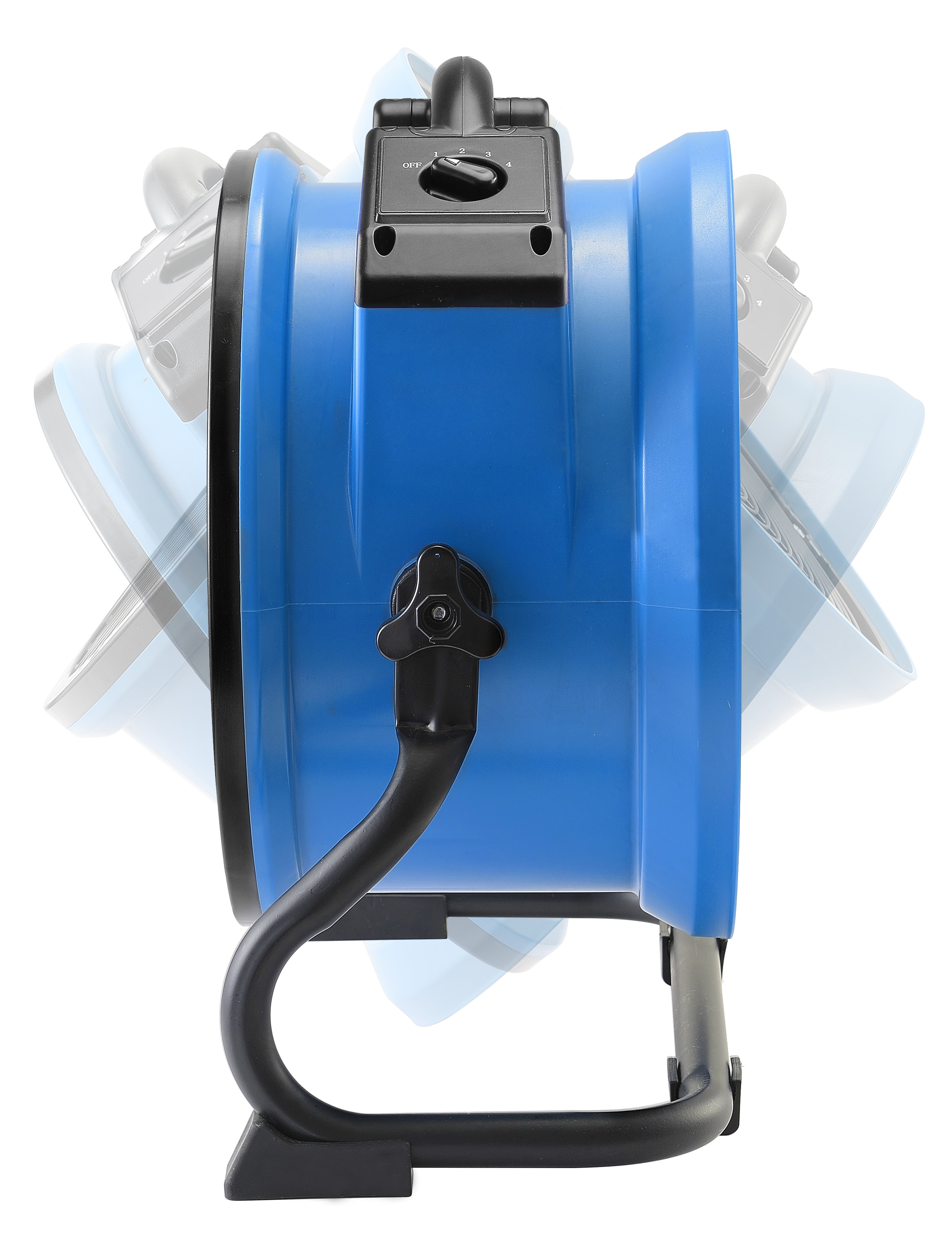 XPOWER FC-300 Professioneller Air Circulator Utility Fan Der XPOWER FC-300 ist ein professioneller Hochleistungsventilator, der sich durch Stärke, Vielseitigkeit und Effizienz auszeichnet. Mit einer Luftstromkapazität von bis zu 3568 m3/h und einem energieeffizienten Verbrauch von nur 1 Ampere ist er die ideale Lösung für schnelles Trocknen und effektive Belüftung in Werkstätten, Lagern, Baustellen oder nach Wasserschäden. Ausgestattet mit einem 1/4 PS Motor und einem 4-Stufen-Schalter lässt sich das gewünschte Luftvolumen einfach für jede Anwendung einstellen. Dank des 3-Stunden “Set-N-Forget” Timers arbeitet der Ventilator selbstständig, ohne dass Sie sich um das Ausschalten kümmern müssen. Die fortschrittliche Luftleitflügel-Technologie Das robuste Gehäuse aus spritzgegossenem Polypropylen macht den FC-300 leicht und dennoch langlebig, und in Kombination mit dem stabilen Rack/Ständer genießen Sie eine vollständige 360° Luftstromrichtung. Die fortschrittliche Luftleitflügel-Technologie sorgt für eine gleichmäßige und kraftvolle Luftverteilung. Praktischer Einsatz steht im Vordergrund: das 3 m Heavy-Duty Kabel mit Aufwicklung und der ergonomische Grab-N-Go Griff machen den Transport einfach. Außerdem kann der Ventilator bis zu 5 Geräte hoch gestapelt werden, um Platz beim Lagern zu sparen.