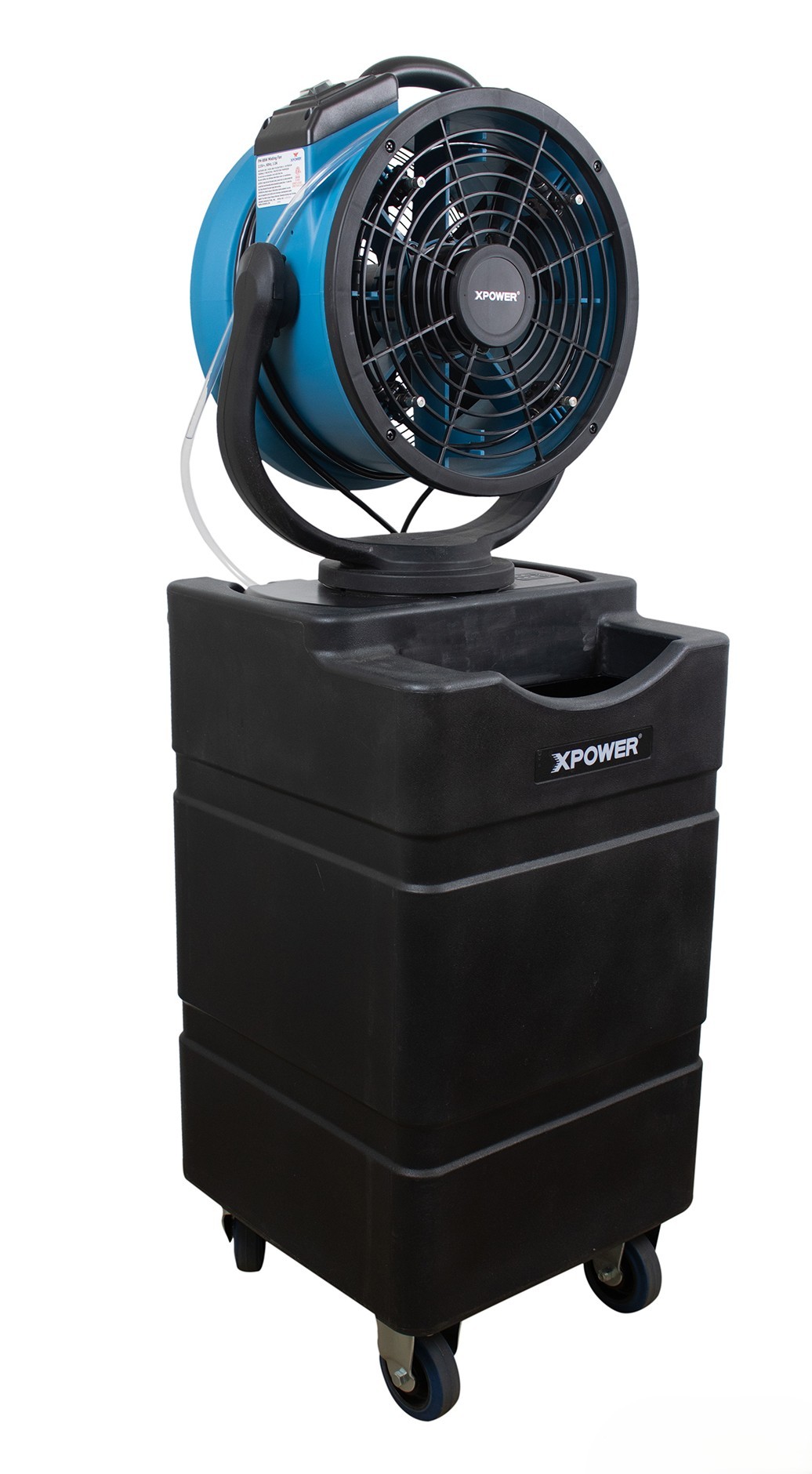 Lernen Sie den XPOWER FM-88W kennen, jetzt mit Oszillation für maximale Abdeckung und Kühlung bei allen Outdoor-Events. Dank der integrierten Wasserpumpe ist kein Anschluss an einen Gartenschlauch mehr erforderlich. Dieses XPOWER FM-88W wird mit dem mobilen Wassertank WT-90 geliefert. Der FM-88W bietet eine wirklich mobile Befeuchtungsfunktion mit integrierter GFCI-Schutzschaltung für höchste Sicherheit. Perfekt für Terrassen, Gartenpartys, Sportveranstaltungen, Poolbereiche oder sogar für den Einsatz in Gewächshäusern. Robust und zugleich stilvoll, sorgt dieser Ventilator für angenehme Kühlung und kann die Umgebungstemperatur um bis zu 14 °C senken. Wird die Wasserzufuhr getrennt, liefert der FM-88W eine extrem energieeffiziente Belüftung (nur 1 Ampere) mit einem starken Luftstrom von 2450 m3/h für eine optimale Luftzirkulation im Innenbereich.